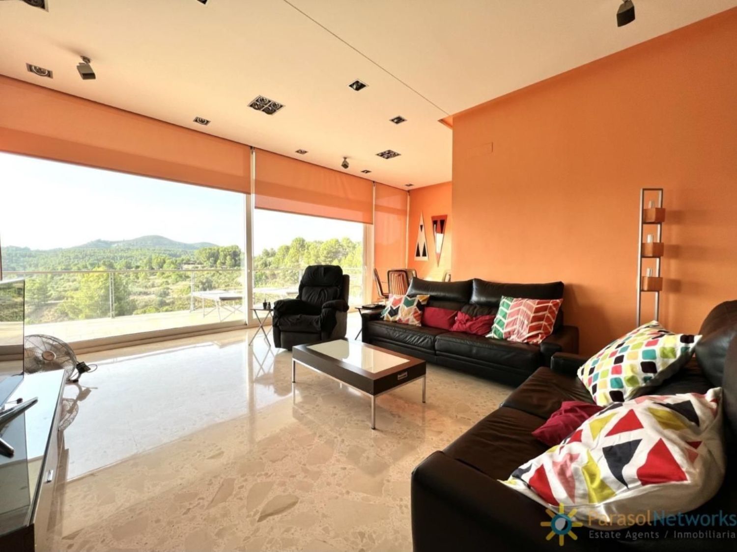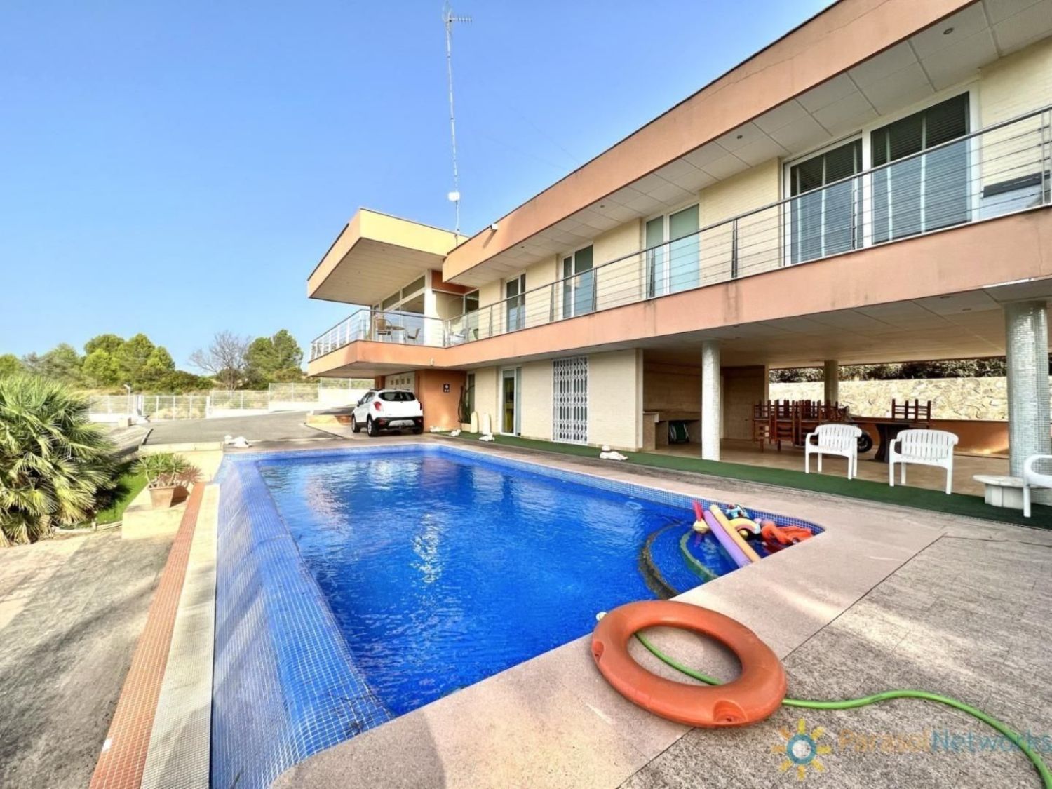 Perfecto chalet moderno combinando a la perfección con la comodidad y elegancia, ubicado en un entorno natural inigualable de Beniganim.Posee una selecta parcela de 7.132m2 con una construcción de 443m2, distribuidos en dos niveles.En la planta baja hay, un recibidor, una habitación doble con acceso a la piscina, dos baños completos con ducha (uno de ellos con salida a la marquesina). Además, hay un garaje con trastero y un armario para las calderas de la calefacción.En la primera planta nos encontramos un ancho pasillo que comunica con el salón comedor acristalado con preciosas vistas, una amplia cocina con despensa, un baño completo con ducha, tres amplias habitaciones (todas con armarios empotrados con acceso a la terraza privada), aunque la habitación principal cuenta con un baño en suite y un vestidor.En el exterior hay una magnifica piscina para disfrutar de las vistas panorámicas a la montaña.La casa está equipada con sistema de seguridad de alarma conectada a la central.