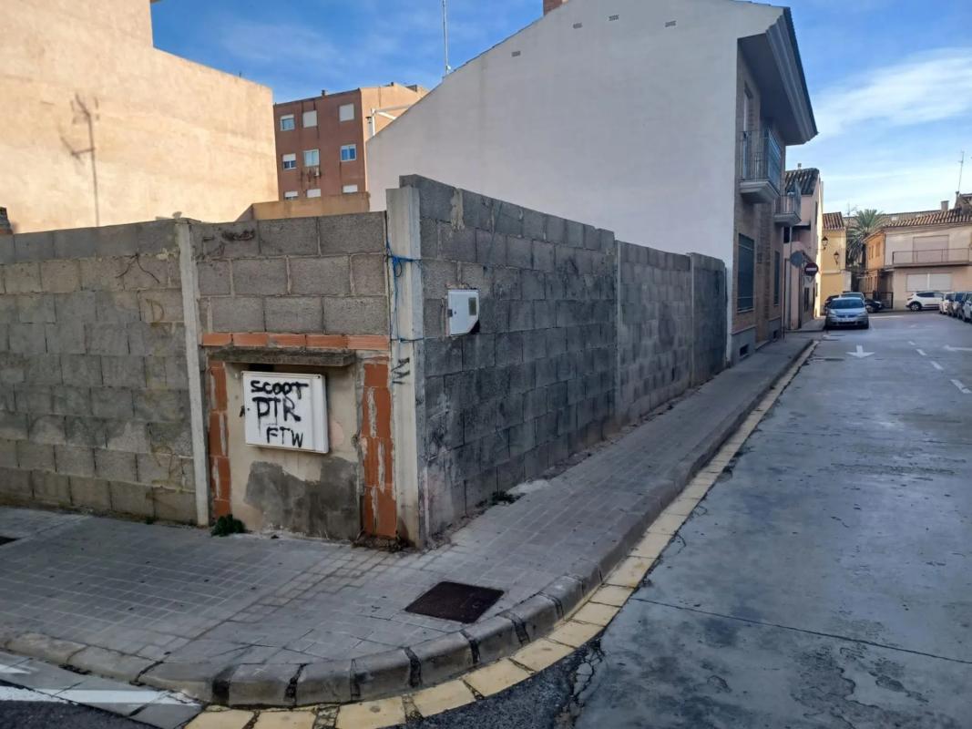 Parcela urbanizable esquinera Se puede edificar: sótano y tres alturas. Con acceso en la acera a agua, luz alcantarillado, etc.