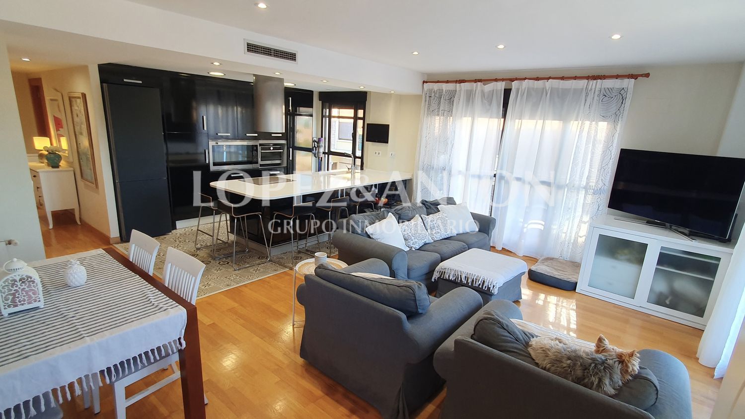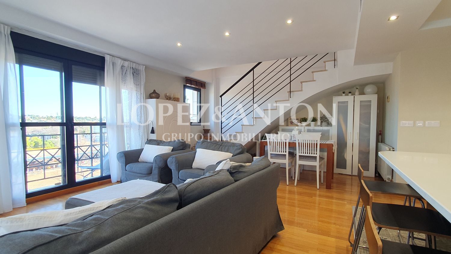 Magnífico ático dúplex de 143 m2 construidos, con plaza de garaje y totalmente reformado en el centro urbano de l’Eliana. Vivienda toda exterior con vistas despejadas, muy luminosa y perfectamente conservada ubicada en la tercera y cuarta planta de un edificio de 2007 con ascensor. En planta principal (3er piso), habitación doble, baño completo con ducha y amplio salón comedor de 35 m2 con la cocina integrada, una gran isla central y amplios ventanales con 2 balcones que aportan mucha luz natural a la estancia. En primera planta (4º piso), 3 habitaciones dobles con techo abuhardillado, 2 baños (1 en la habitación principal) y fantástica terraza con acceso independiente que actualmente está cerrada con un techo móvil traslúcido, corredizo y con mosquiteras, habilitada como una acogedora zona de ocio con gran cantidad de armarios para almacenaje que además ocultan un pequeño despacho y el cuarto de lavado. Calefacción central de gas natural, aire acondicionado frío/calor por conductos, descalcificador, suelo de madera, armarios empotrados en todas las habitaciones, ventanas con doble cristal, paredes lisas, puerta de seguridad. Muy buena ubicación con todos los servicios alrededor, colegios, instituto, polideportivo, comercios, supermercados, transporte público… (Ref. V-P120).La información proporcionada en este anuncio es orientativa, no es vinculante y carece de validez contractual. El precio de venta no incluye honorarios de la agencia inmobiliaria, impuestos (ITP, IVA) y otros gastos de la compraventa (notaria, gestoría y registro).L’Eliana es un municipio de la Comunidad Valenciana ubicado en la comarca del Camp de Túria a escasos 20 km del centro de la ciudad de Valencia, de sus playas y a 10 minutos del aeropuerto de Manises. Cuenta con un gran número de urbanizaciones alrededor de su núcleo urbano con una población estable de cerca de 20.000 habitantes en todo su término municipal. L’Eliana ofrece todos los servicios necesarios para la vida diaria: importantes centros escolares nacionales e internacionales (Colegio Iale), numerosas instalaciones y clubs deportivos alrededor (Club de Tenis, gimnasios, piscinas cubiertas, polideportivos o el Club de Golf Escorpión), multitud de comercios, supermercados, centro comercial El Osito, centros de salud, restaurantes con una gran oferta gastronómica, amplias zonas verdes como el Parque Natural de la Vallesa o el Parque fluvial del Túria además de tener muy buena comunicación con Valencia y alrededores por la autovía CV-35 o por transporte público a través de sus 5 paradas de metro o el autobús de línea regular. Todo ello hace de esta población un lugar muy atractivo para vivir todo el año. Su conocido carácter cosmopolita junto a la gran cantidad de propuestas culturales, educativas, sociales o deportivas que ofrece, ha hecho que familias de numerosas nacionalidades elijan l’Eliana como lugar de residencia en los últimos años.