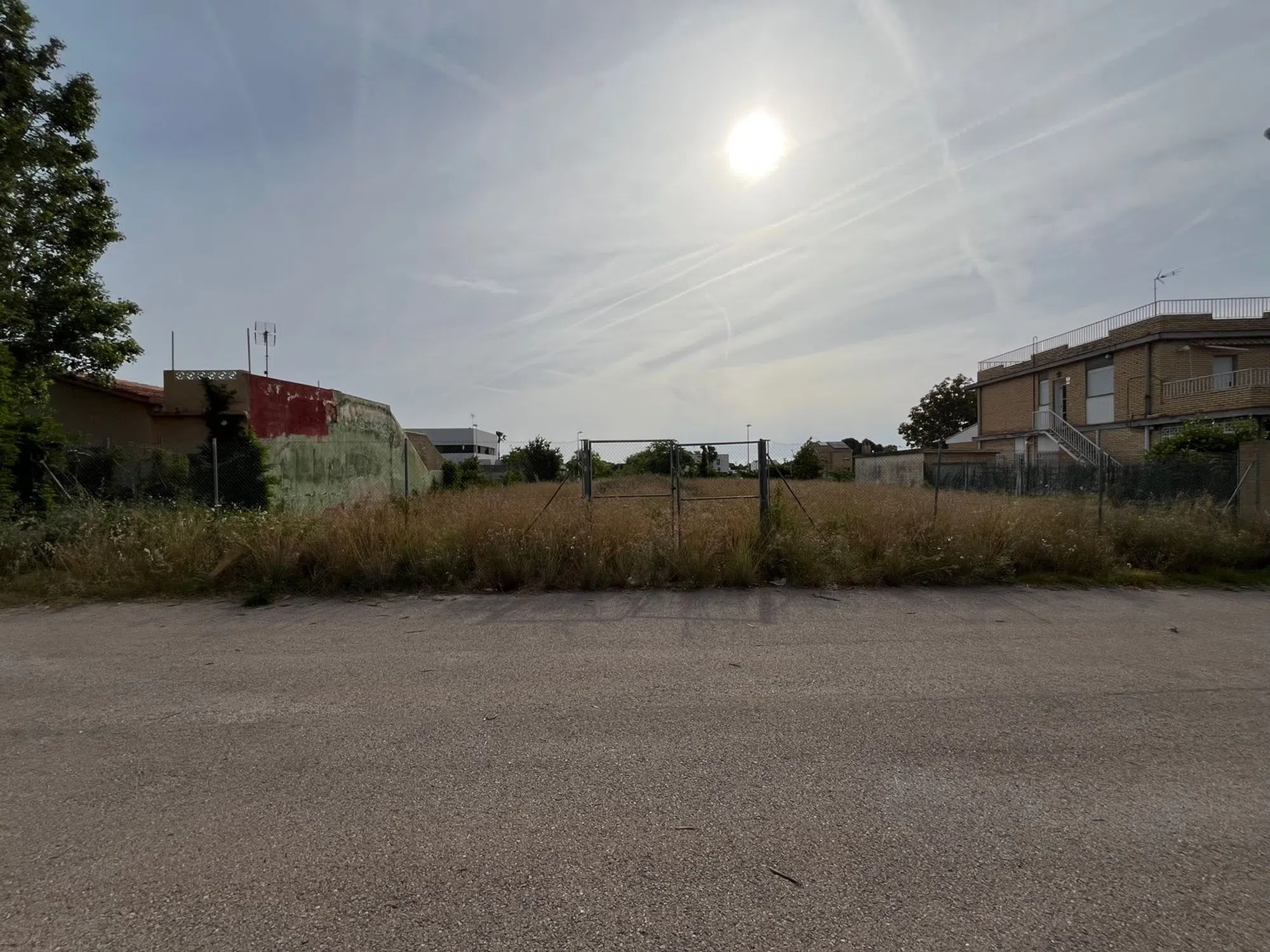 Solar urbano a dos calles de 738m2 con posibilidad de construir dos viviendas con entradas independientes, 22 metros de fachada, 34 metros de largo, zona urbanizada con todos los servicios, agua, luz, alcantarillado y alumbrado público. Parada metro a 5 minutos.