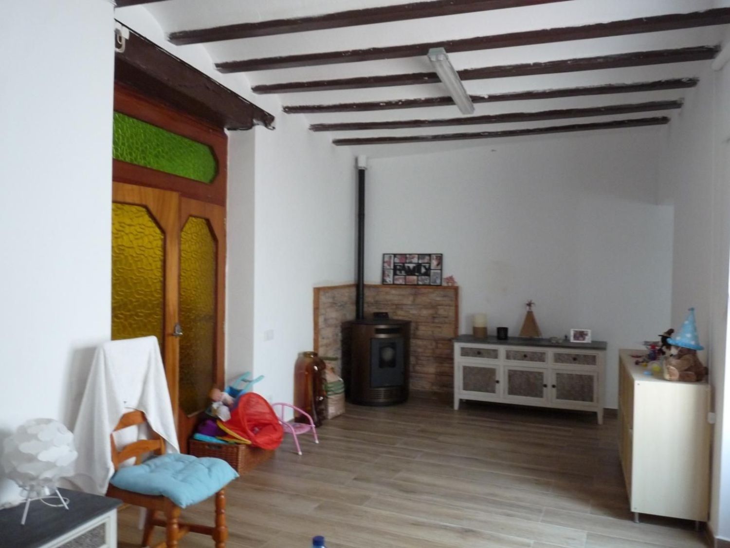 Venta de casa en el centro de Montaverner, de estilo rustico. Necesita una pequeña renovación, con parcela de 190m2 y una superficie construida de 420m2 distribuidos en varias plantas, (dos partes delanteras y dos partes traseras).La planta baja delantera tiene, un amplio recibidor, un salón comedor con chimenea, cocina, dos habitaciones, dos baños (uno con bañera y el otro con ducha), y dos patios interiores.La primera planta delantera, por la cual se puede acceder por dos sitios, tiene cuatro habitaciones y una terraza con vistas al patio.La parte trasera tiene dos alturas. En la planta baja hay un trastero con lavadero y una escalera que da acceso a una primera planta con otro trastero y esta da acceso a una segunda planta con terraza sin vistas. La distancia a la playa es de 40mintos en coche, la propiedad tiene agua potable y agua de pozo, también tiene electricidad.