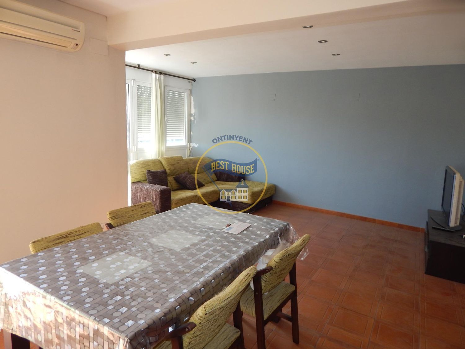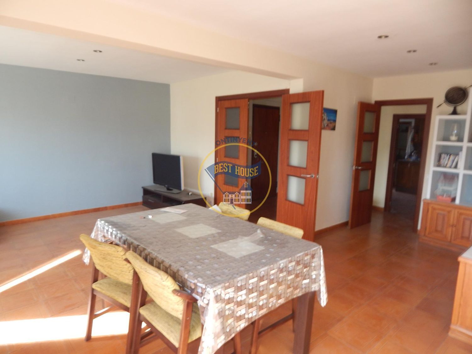 Espacioso piso todo exterior, con espectaculares vistas de Ontinyent y montañas. La vivienda tiene 107m2 distribuidos en un gran hall de entrada con armario empotrado, un luminoso salón comedor con salida al amplio balcón con bonitas vistas, una espaciosa concina con gran despensa y galería cerrada. Además tiene un baño completo, dos habitaciones dobles con armario empotrado y una habitación simple. También cuenta con armario empotrado en el pasillo.Todas sus puertas son macizas, puerta principal de seguridad, ventanas PVC climalit y puerta corredera al balcón de aluminio climalit. Además dispone de aire acondicionado en el salón.