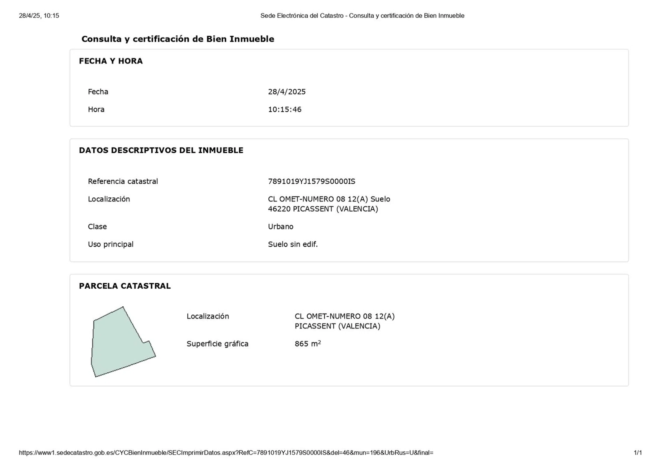 Terreno urbano, segregable hasta en cinco parcelas. Ubicado en la urbanización Omet, a 2 km de Picassent y 20 km de Valencia. Cuenta con todos los servicios ya que se sitúa en una zona urbana consolidada. Acceso a la parada de metro a tan sólo cinco minutos andando. Hay proyectada una pasarela que aún acortará más la distancia a la estación. El plan urbanístico está disponible en el ayuntamiento de Picassent y se puede consultar. Se puede segregar hasta en cinco parcelas y varias alturas por lo que resulta muy atractivo para inversores y constructores. Además la construcción podría ser inmediata al contar ya con todos los servicios urbanos.