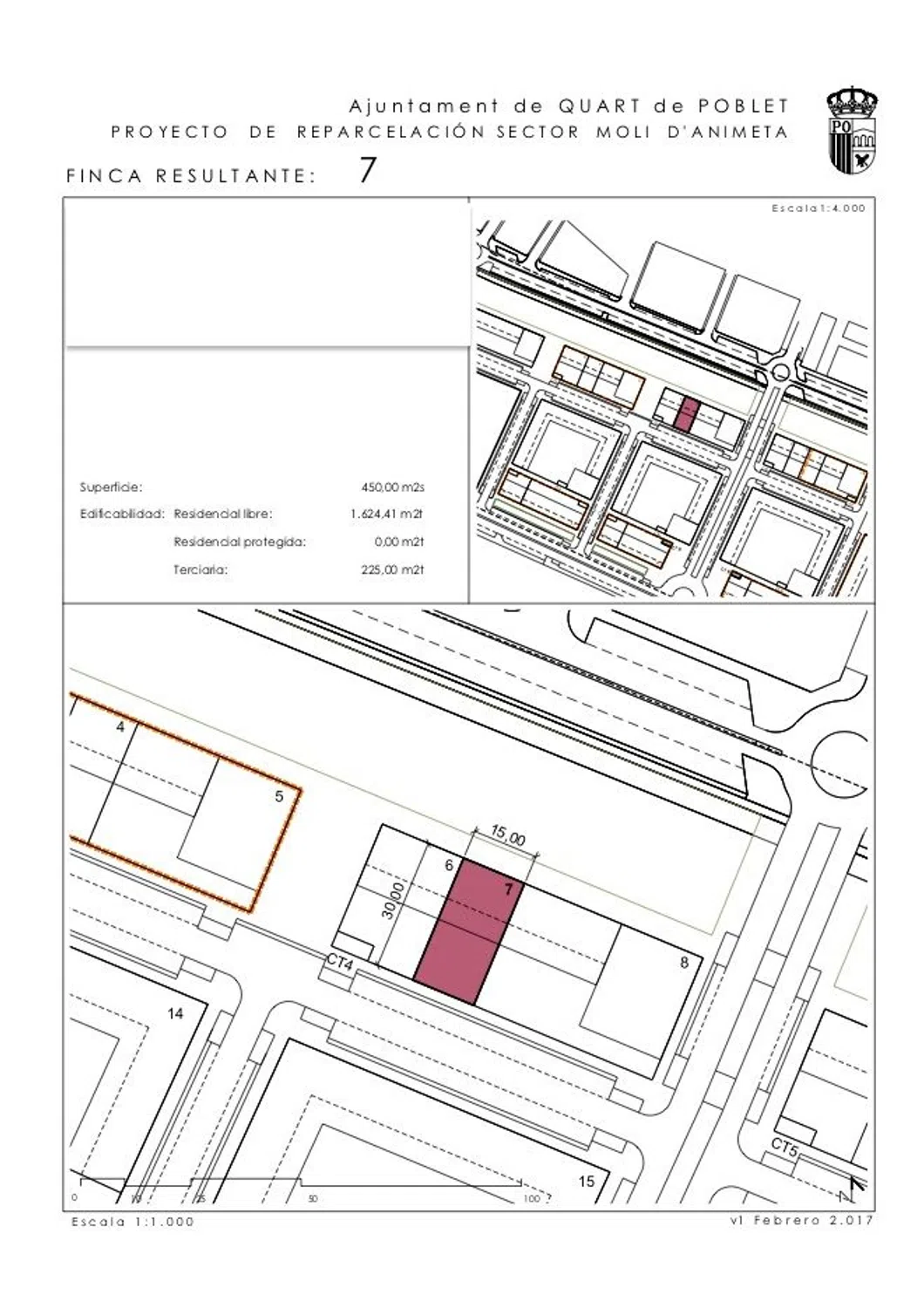 Solar residencial plurifamiliar en la zona de Moli d´Animeta en Quart de Poblet, zona con alta demanda en expansión, nueva urbanización, muy bien comunicada con transporte publico (2 paradas de metro cercanas FAITANAR Y QUART DE POBLET) y rodeado de colegios, parques, zonas verdes etc.. . y muy bien comunicado con la autovía y a penas a 10 minutos de Valencia capital. Tiene una superficie de 450m2 con una edificabilidad de 1.850m2 de techo para uso residencial libre y 225m2 de techo para terciario (oficinas, locales). Saldrian unas 17 viviendas en 7 plantas+atico+ bajo. En total 9 plantas. Este anuncio es a título informativo, no vinculante ni contractual con posibles variaciones o erratas. HATO Y LLOPIS S. L está inscrita en la Asociación de profesionales Inmobiliarios APIVA Nº 0163 y en el Registro de agentes de intermediación inmobiliaria de la COMUNIDAD VALENCIANA RAICV Nº 1614.