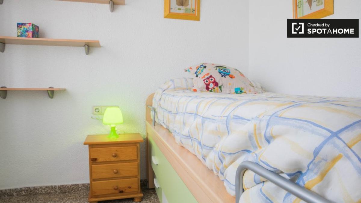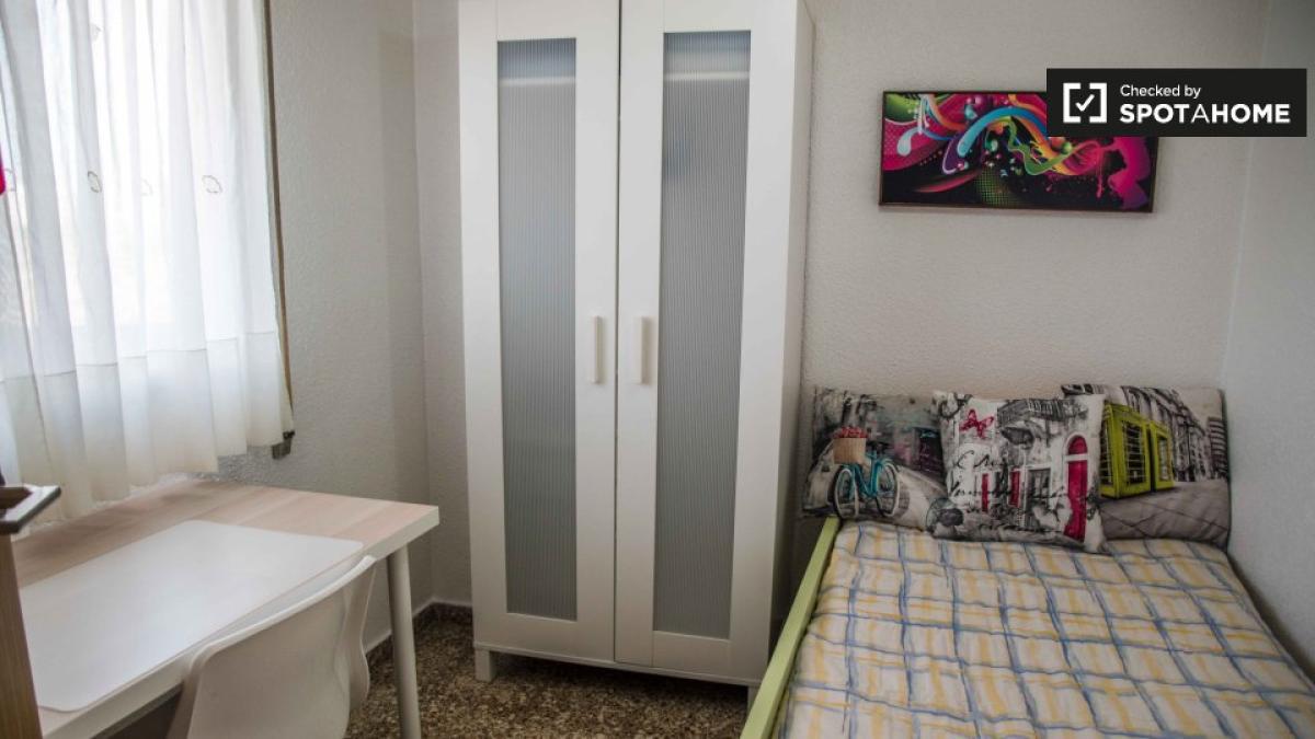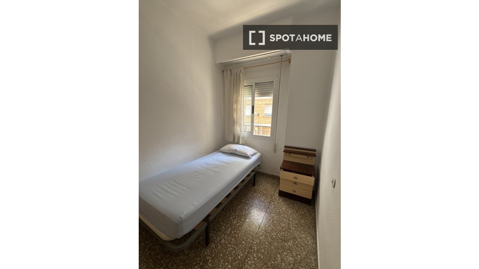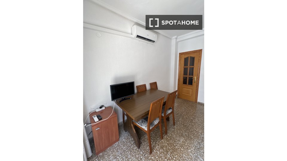 Entdecken Sie dieses einladende Zimmer in einer 3-Zimmer-WG in Aldaia, Valencia. Die perfekt möblierte Unterkunft verfügt über individuell regulierbare Klimaanlagen, einen luftigen Balkon und eine gut ausgestattete Küche für ein komfortables Wohnerlebnis. Die Wohnung ist bequem per Aufzug erreichbar und alle Nebenkosten (Strom, Gas und Wasser) sind im Preis inbegriffen. WLAN ist jedoch nicht verfügbar. Paare und Raucher sind nicht gestattet. Spotahome-Vermieter durchlaufen ein umfassendes Überprüfungsverfahren, um ihre Zuverlässigkeit zu gewährleisten.