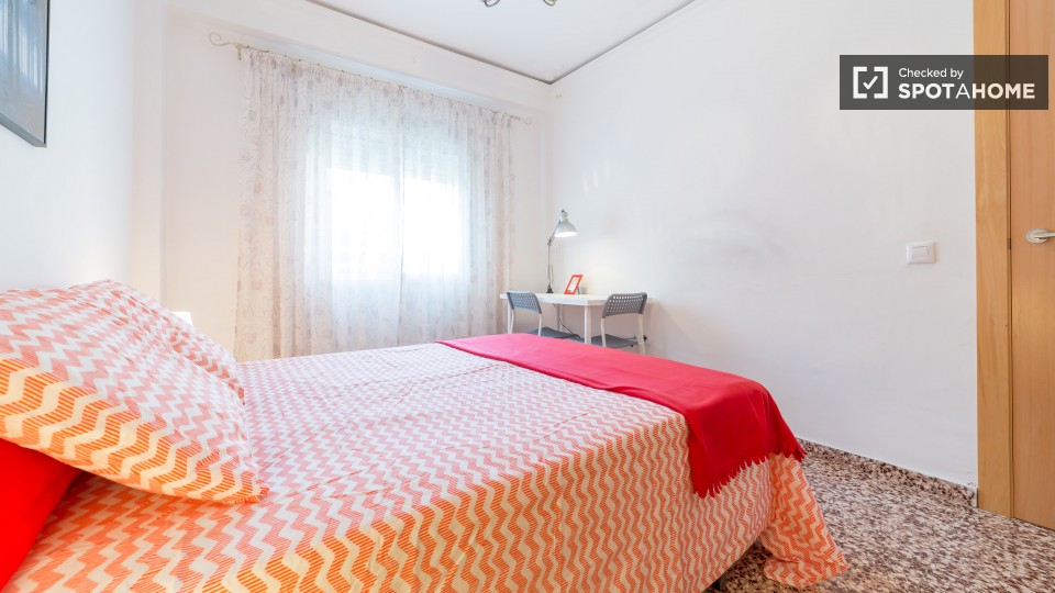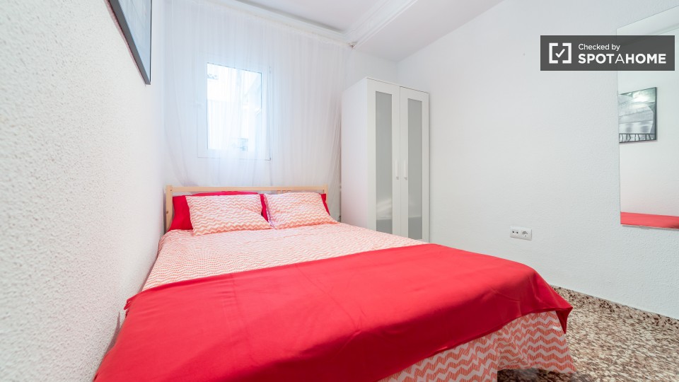Die Zimmer sind in einem 80 m², 3-Zimmer-Wohnung in Jesus in Valencia zu mieten. Die Wohnung fühlt sich sauber und frisch und verfügt über eine voll ausgestattete Küche sowie ein Wohnzimmer, wo man vor dem Fernseher oder genießen Sie Ihre Mahlzeiten am Esstisch entspannen können, anstatt in Ihrem Schlafzimmer zu essen.