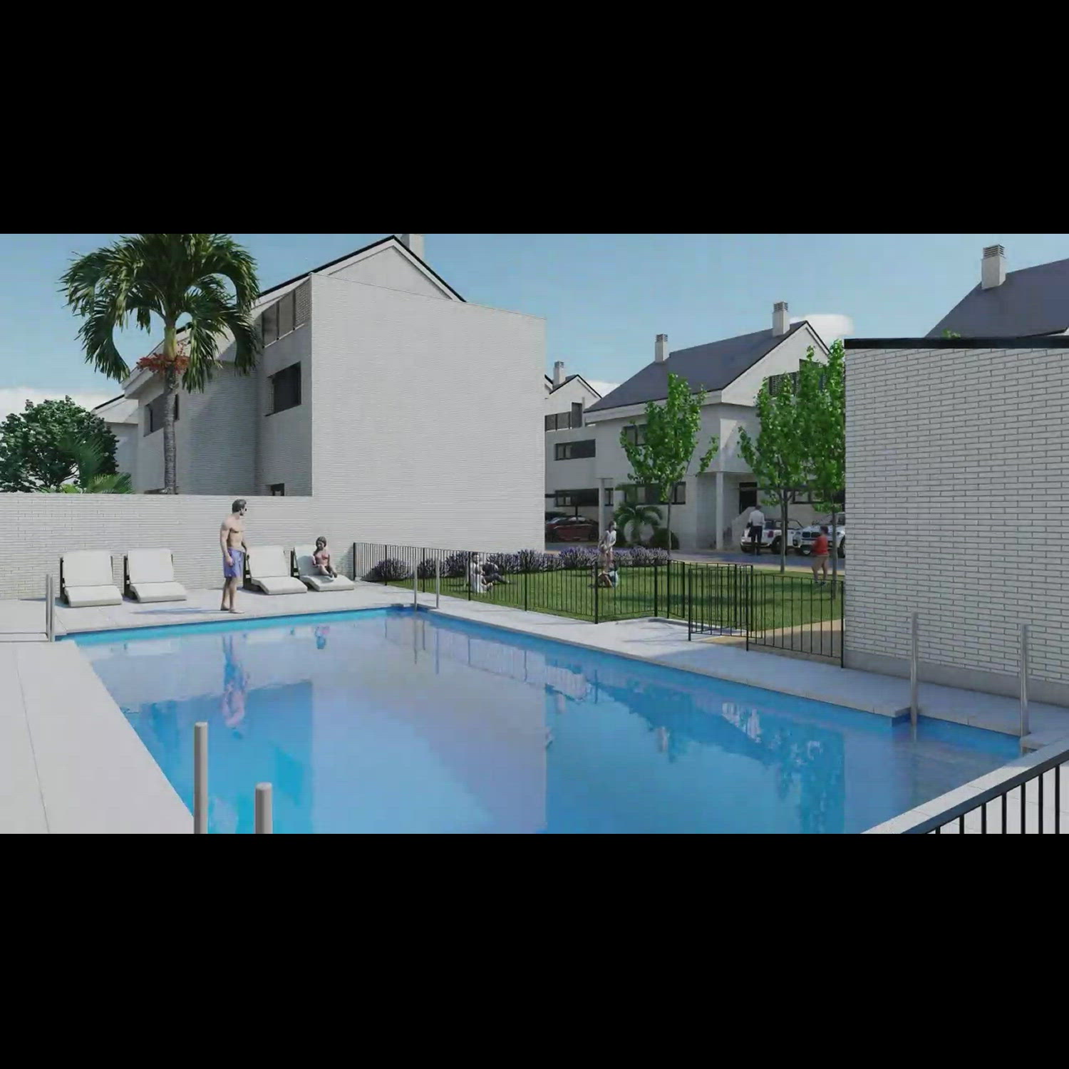 New building work underway. Our residential project features a gated community that emphasizes open spaces, with communal areas and a swimming pool. The complex includes paved walkways and landscaped areas.