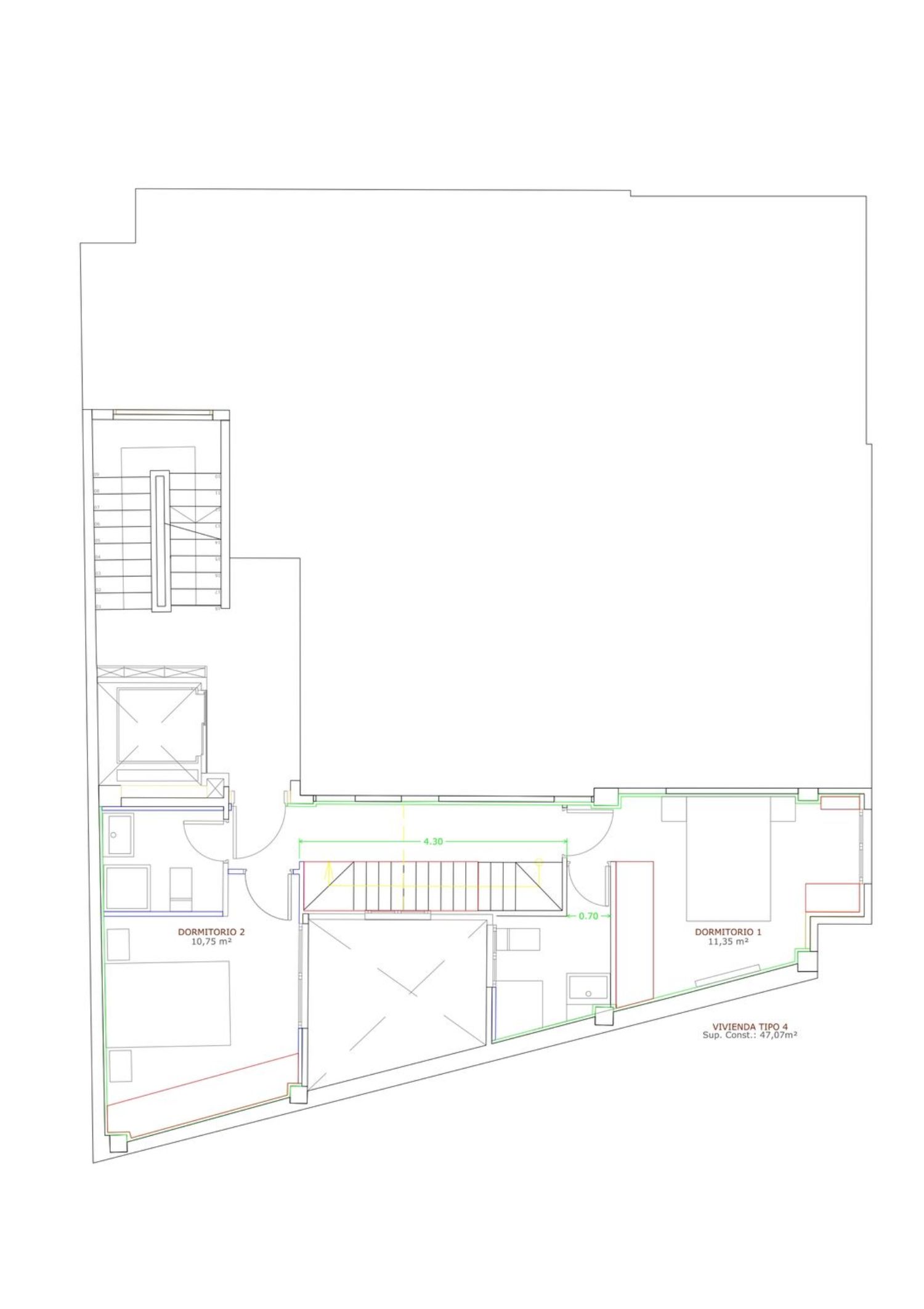 The top floor boasts a penthouse-style apartment, providing exclusivity and privacy. This Type A penthouse, spread across the fourth and fifth floors, features two spacious bedrooms and two modern bathrooms. One of its most attractive qualities is a private rooftop terrace with direct access from within the apartment, perfect for enjoying open-air living in a serene environment.