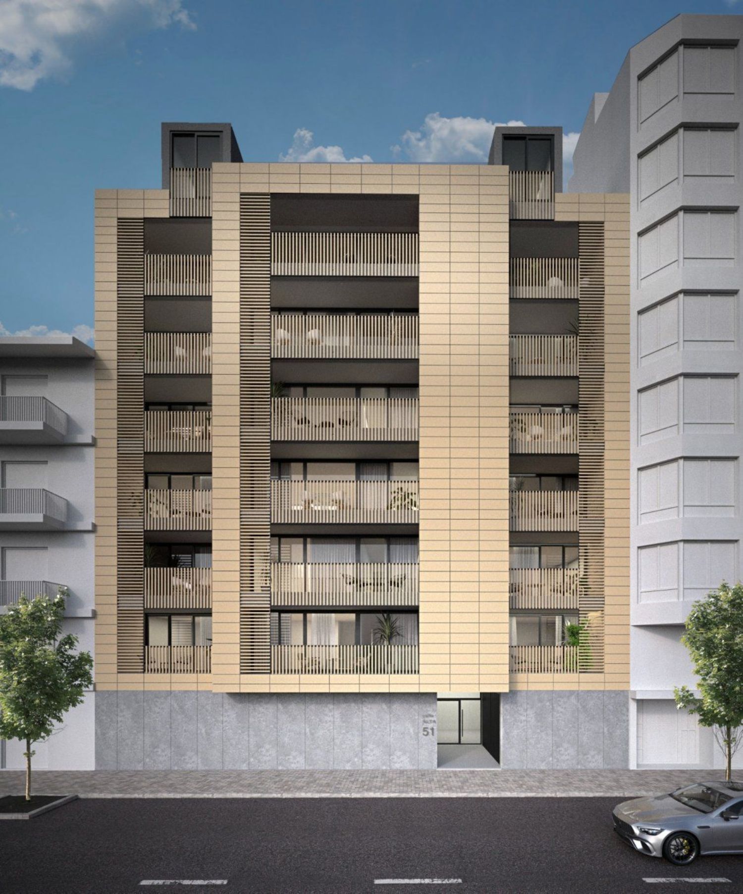 The new development features 21 homes, combining both apartments and penthouses, with configurations ranging from two to three bedrooms and two bathrooms. Each residence boasts spacious terraces and comes with storage facilities, with the option for a garage. These homes are designed with a focus on functionality, sleek design, and privacy, while also ensuring maximum energy and cost efficiency.
