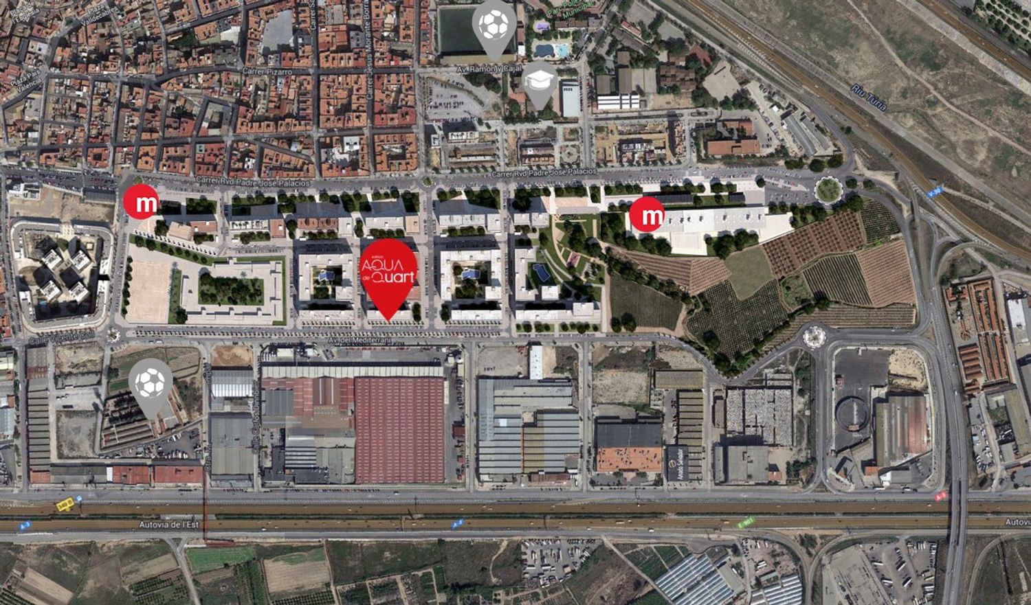 Located in an area with excellent connectivity to Valencia's primary metropolitan routes, residents have easy access to major arterial roads and the city's metro system. This burgeoning neighborhood combines urban convenience with traditional charm, offering over 100,000 square meters of green spaces, pedestrian zones, an amphitheater, and a stunning viewpoint of the Turia River Park. Essential services are conveniently close, including hospitals, supermarkets, schools, sports centers, and a range of recreational facilities such as playgrounds, paddle tennis courts, and the local football field.