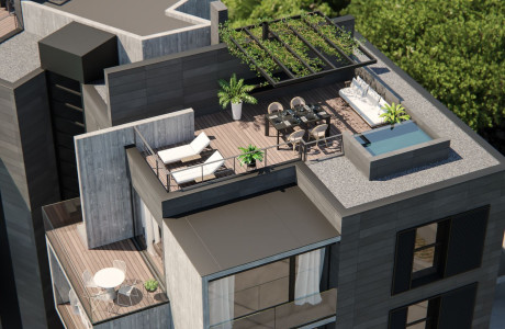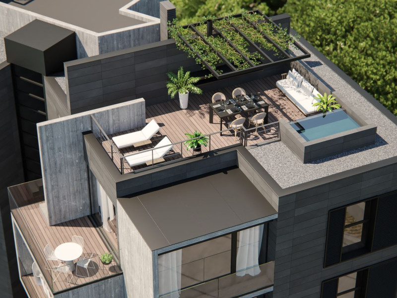 Welcome to an exclusive real estate opportunity featuring a modern development of 16 spacious apartments, offering both two and three-bedroom options, each boasting around 100 square meters of space. These residences are complemented by beautiful terraces and gardens, designed with top-quality finishes spread across two blocks. Each block includes a ground floor and three additional levels, culminating in stunning penthouses that feature expansive terraces, pergolas equipped with summer kitchens, barbecues, and private, small pools.