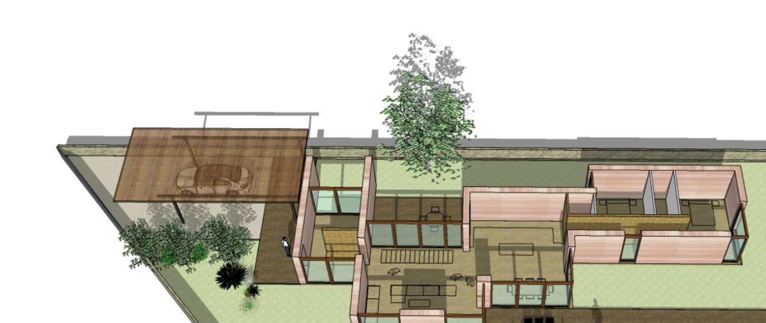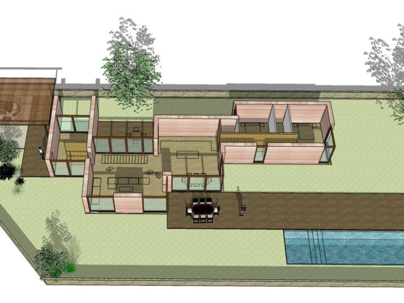 The south-facing property is designed to maximize natural light and includes three distinct patios or terraces based on their orientation: a summer garden, a winter patio, and an access garden. The ground floor seamlessly connects to the main garden and pool through expansive windows. On the top floor, residents can enjoy views of the Montgrí, Pals, and Begur. The building features green roofs that are walkable, and the upper floor boasts double-height spaces that link the study-library with the living room on the ground floor.