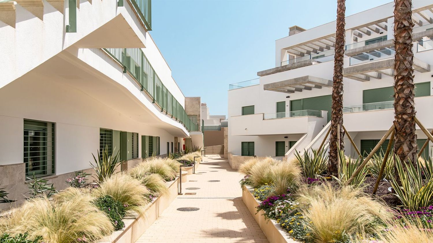 This newly available residential community offers immediate occupancy and features a pilot apartment for viewing. Located on the idyllic coast of Mojácar, this project consists of modern one, two, and three-bedroom residences, nestled in an expansive, secure gated community just steps away from the Mediterranean shoreline. The development consists of 95 contemporary residences, built to provide comfort and enjoyment with their breathtaking ocean views.