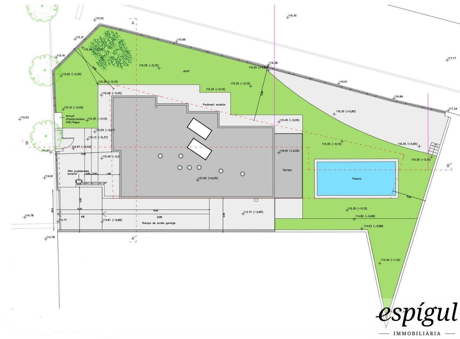 Proyecto de construcción de casa aislada en Mirasol, ubicada en un solar plano, en chaflán y muy bien orientado de superficie 527 m².La casa se distribuye en:– Planta Sótano de 109,11 m² destinada a garaje para 4 coches.– En la planta baja de 116,02 m² se encuentra el salón-comedor, cocina, 1 habitación, baño y zona de lavadero y plancha. Porche de 14,50 m². El jardín de 382 m² dispone de piscina.– En la planta primera de 111,14 m² encontramos 3 amplios dormitorios, un baño, además de una gran suite a la que se accede a través de un amplio vestidor con un espacioso baño. La suite dispone de una salida a una terraza de 14,50 m².Datos constructivos a resaltar: Estructura de CLT, Geotermia, Aerotermia, Placas fotovoltaicas, Depósito para acopio de aguas pluviales de 5.000 litros.Previsión de entrega máxima: primer trimestre 2024.