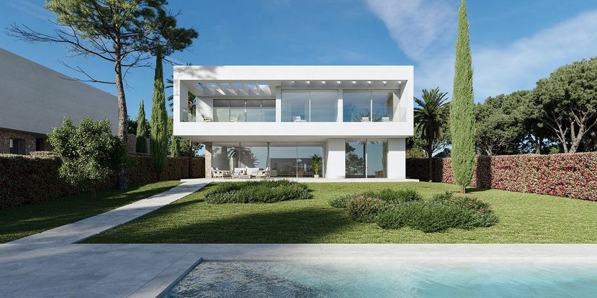 Experience unparalleled luxury in this exquisite villa, part of an exclusive new construction project located in the coveted residential area of Sol de Mallorca in the southwest. Five independent luxury villas are being crafted, seamlessly combining modern architecture with high-quality natural materials and top-tier furnishings. This serene locale is renowned for its numerous white sandy bays, crystal-clear waters, pine forests, and lush green spaces.