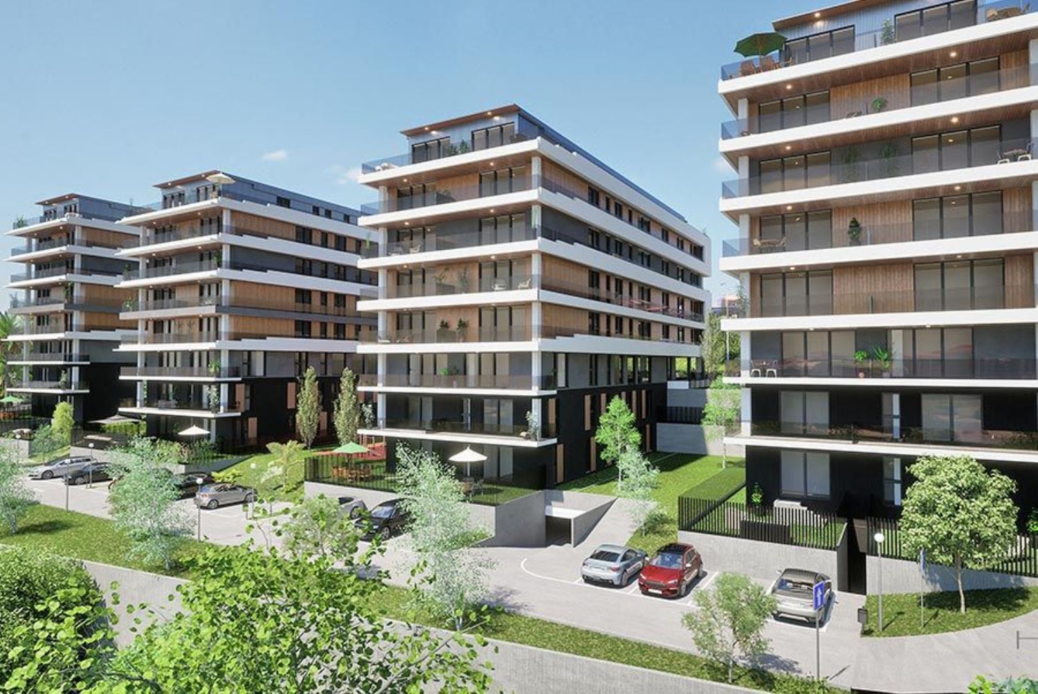 The strategic location places the residences in a thriving urban development area of the city, close to shopping centers, sports facilities, and leisure spaces. Residents benefit from easy access to public services, including urban transport, schools, and playgrounds, all within a ten-minute reach from this new home. This prime positioning ensures that all amenities are conveniently close.
