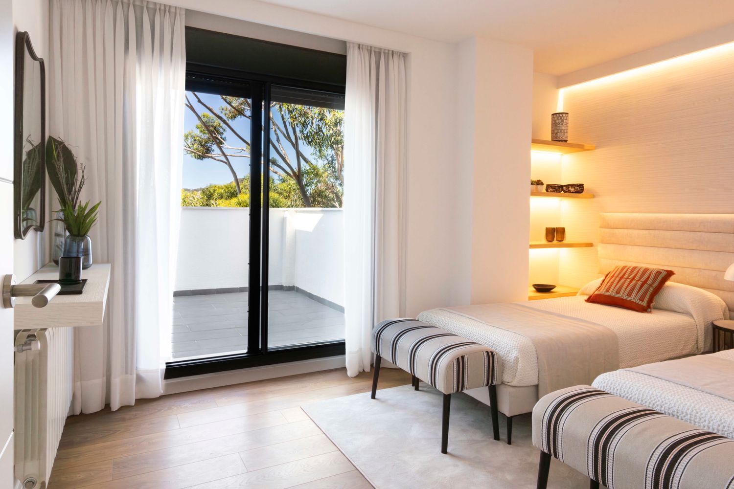 This exclusive enclave offers 16 meticulously designed homes spread across two buildings, featuring three and four-bedroom units. Each residence boasts spacious terraces, with the penthouses offering a solarium and expansive outdoor spaces. State-of-the-art home automation systems, comprehensive climate control, and fully equipped kitchens make every unit a paragon of modern living. All properties enjoy unparalleled vistas of the Málaga bay, enhancing the sense of light and spaciousness.