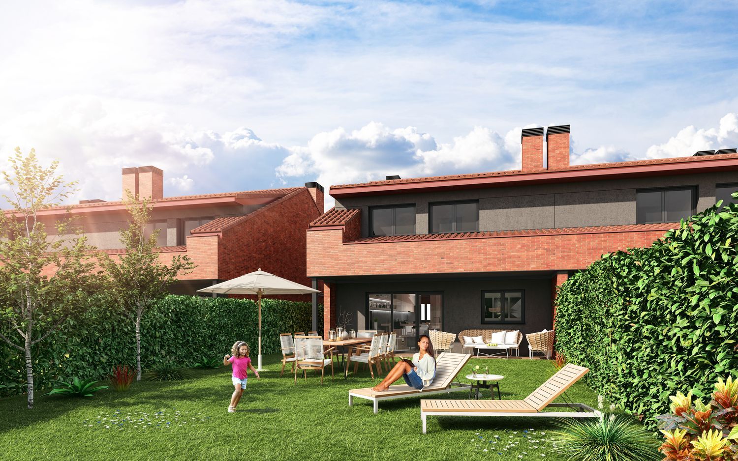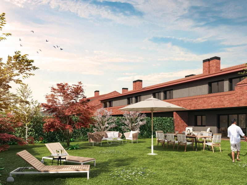 In the picturesque setting of Navarra lies a new development offering three and four-bedroom townhouses. These recently constructed homes are situated in a prime leisure and residential area, a place that more than four hundred families already call home. The townhouses offer ample living space with a total of 180 square meters. The upper floor houses three bedrooms, including a master with a dressing room, and two well-appointed bathrooms. On the ground floor, you'll find a modern kitchen, an additional bathroom, a pantry, and a spacious living-dining area with views of a private garden. There is also the option to add a fourth bedroom on this level.
