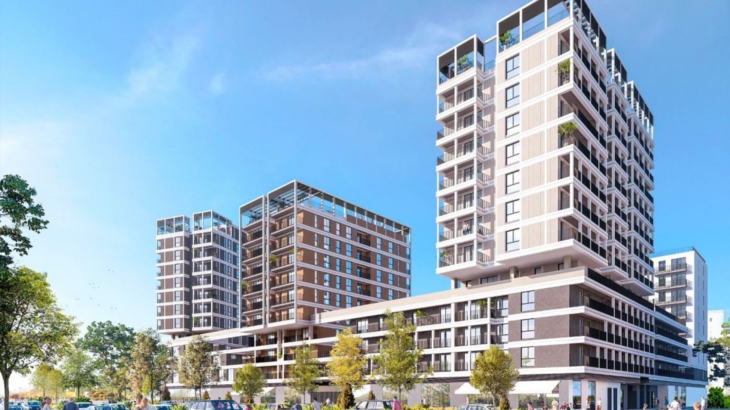 These residences boast high-quality finishes and exceptional attention to detail. For those eager to unwind, the rooftop of each building offers a communal swimming pool and sun deck, presenting perfect opportunities for relaxation under the sun. Families also benefit from a secure ground-level play area dedicated to children's entertainment in a safe environment.