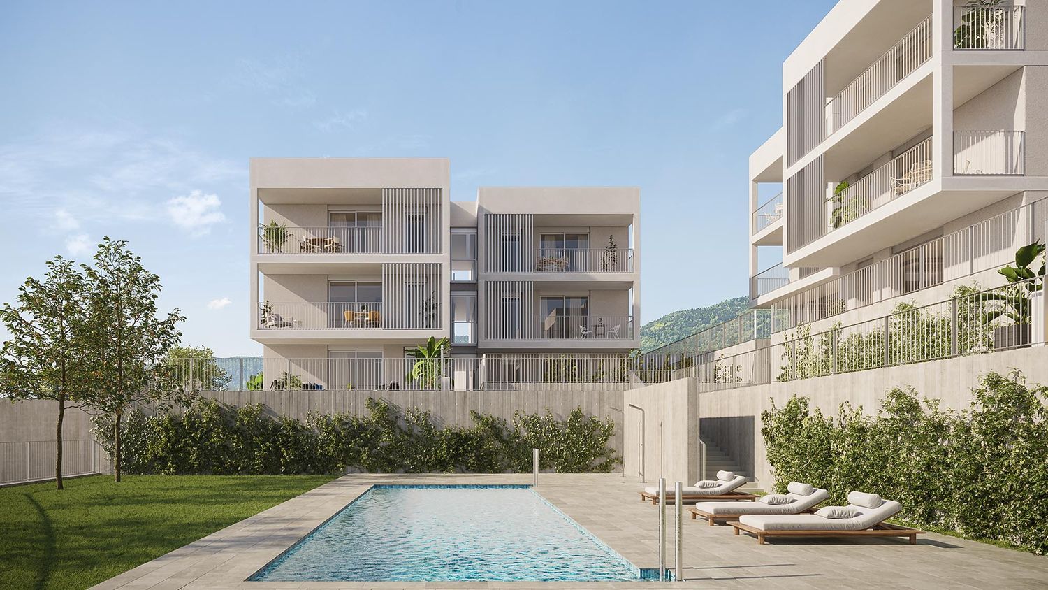 The new building Complex comprises 42 exclusive homes, featuring three and four-bedroom options. These residences boast a unique design, spacious terraces, and beautiful gardens, providing an ideal setting for modern living.