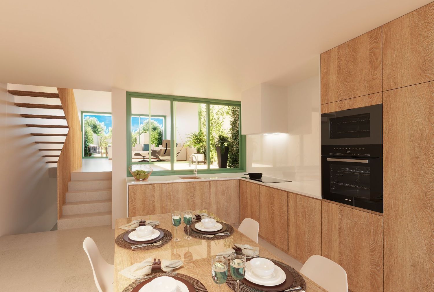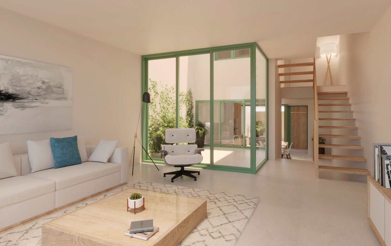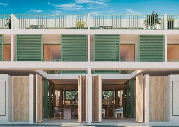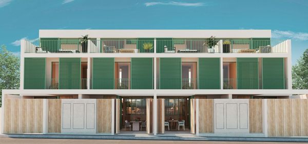 Discover a stunning duplex currently under construction in the heart of Colònia de Sant Pere. This beautiful home is being built in a prime location, close to all amenities, just 200 meters from the beach, and less than 100 meters from the central church square. As you enter from the street, you are greeted by a hallway leading to a practical covered terrace, perfect for parking a car or setting up an inviting dining area for relaxation.