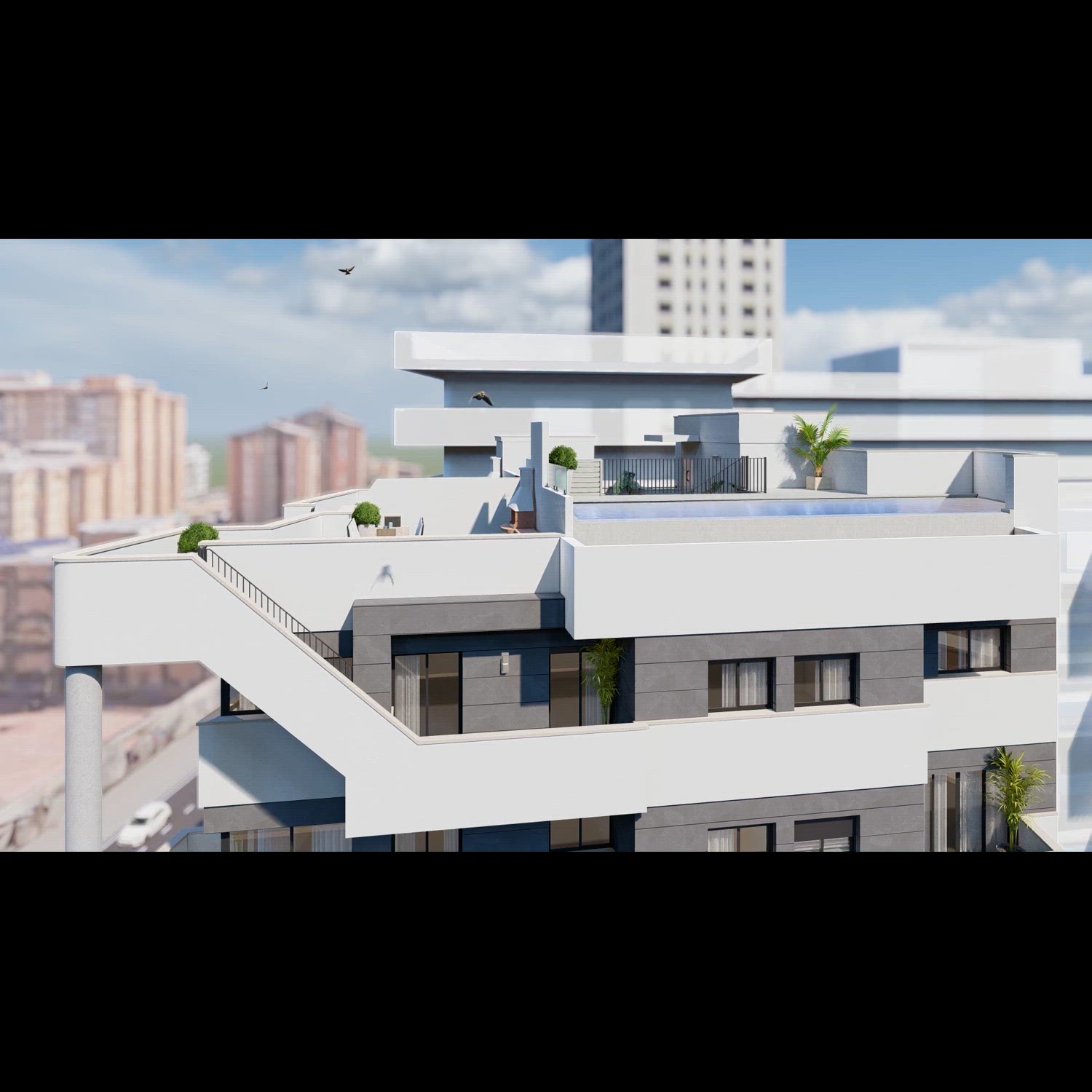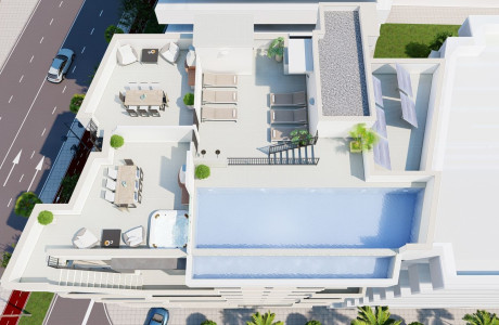 Located in the vibrant city of Málaga, this development offers 25 cooperative housing units, featuring a selection of studios and apartments with 1, 2, or 3 bedrooms. Each unit comes with its own terrace, enhancing the living experience. The building stands out with a beautifully designed rooftop pool that complements the unique architectural style, making it an exclusive property choice.