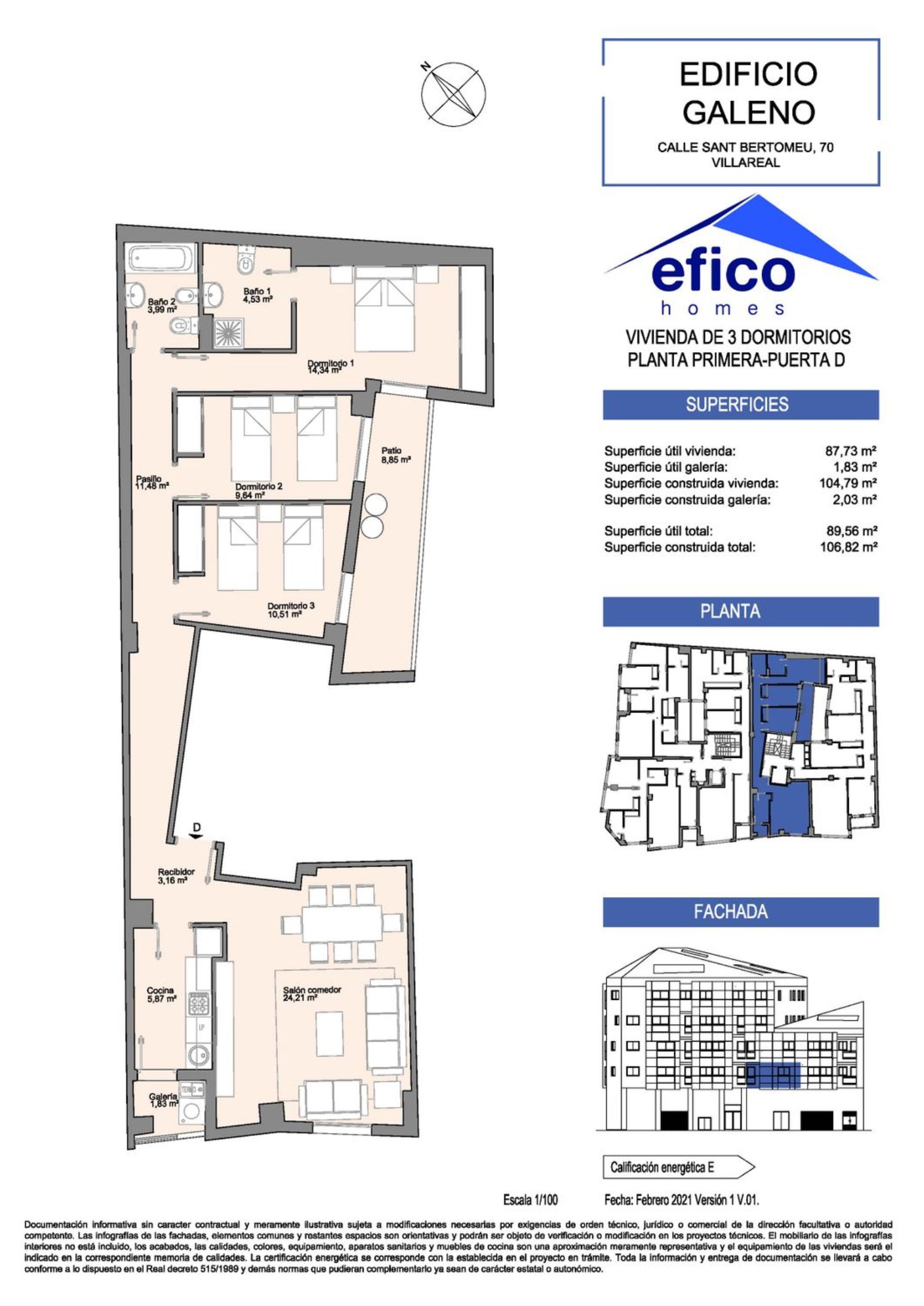 Located in the heart of Villarreal's historic area, in proximity to Avda. Italia, Edificio Galeno offers the serenity of residing within the city while maintaining excellent connectivity to shopping centers, schools, medical facilities, and supermarkets. Additionally, you can access sports facilities, such as the well-known local football club’s sports complex.