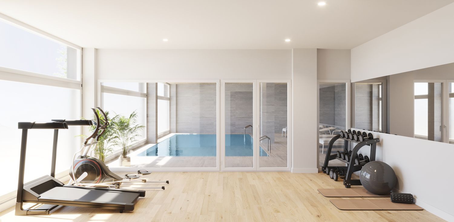 Experience a modern lifestyle with beautifully curated common areas designed for relaxation and fitness. Enjoy access to a heated saltwater pool, a fully equipped gym, a sophisticated gastroteca with a home cinema, and a private playground. There's also designated bike parking, ensuring every detail caters to a contemporary residential experience.