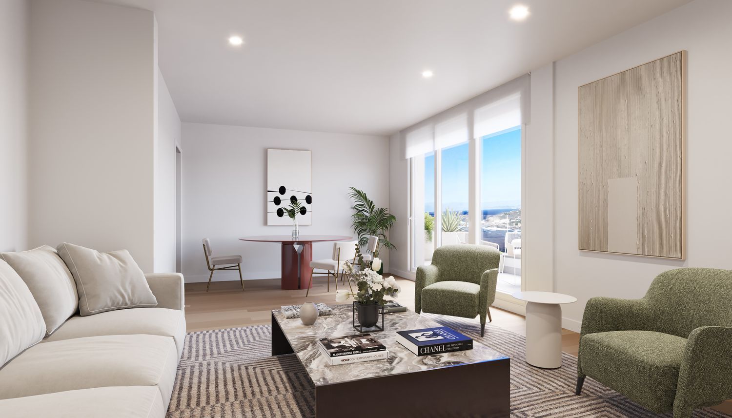 Discover the newly initiated construction of 88 residences, ranging from one to four bedrooms, each with a stunning terrace that promises breathtaking views. The homes offer modern conveniences, including a parking space featuring pre-installation for electric vehicle charging and an included storage room.