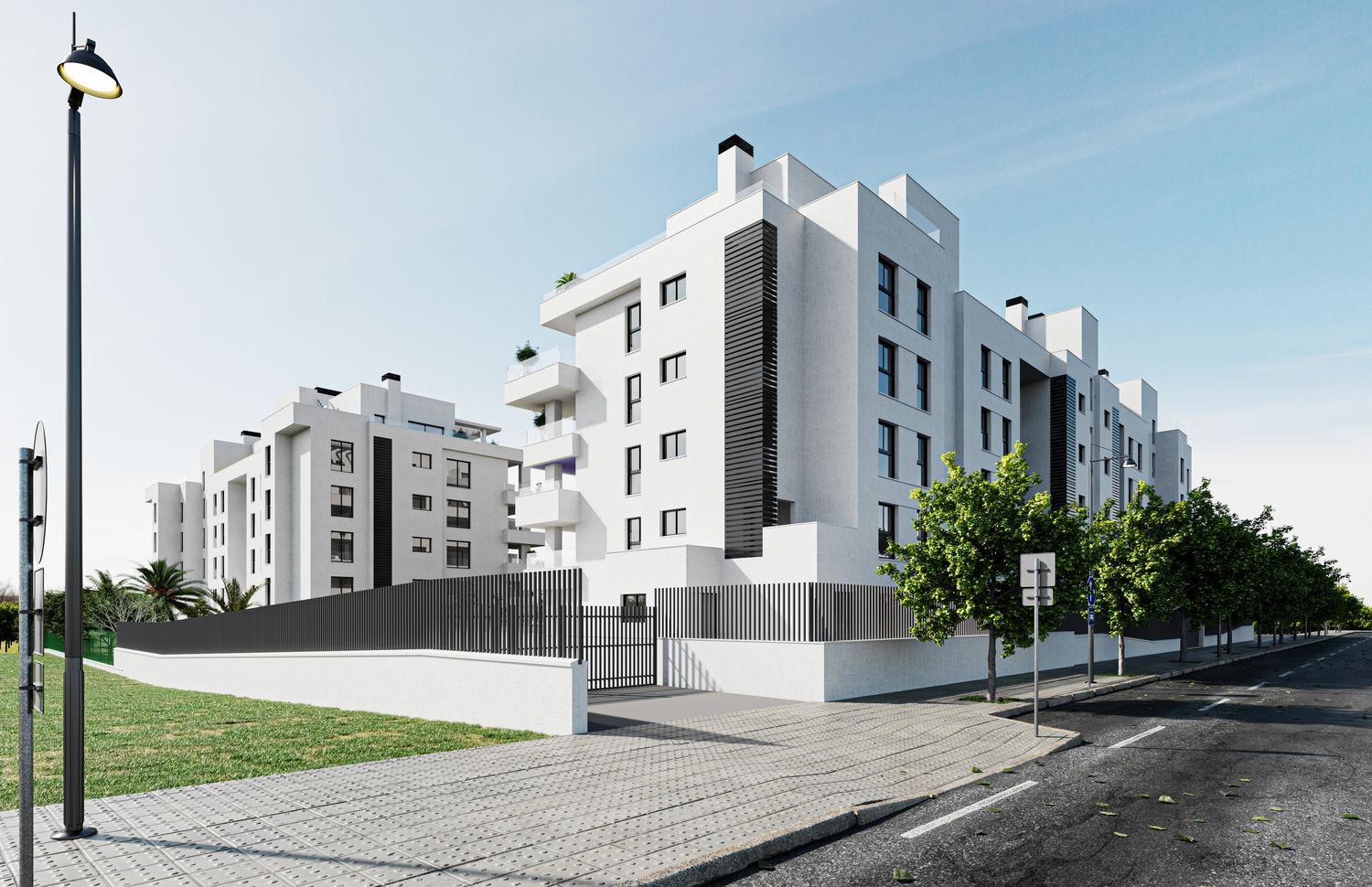 The residences in this development vary between spacious three and four-bedroom configurations, offering a comfortable living space with surface areas ranging from 135 m² to 177 m². The design ensures a contemporary community atmosphere, featuring beautifully landscaped gardens, a swimming pool, children's play area, and a calisthenics zone. A common underground parking with vehicle access ensures additional convenience and security.