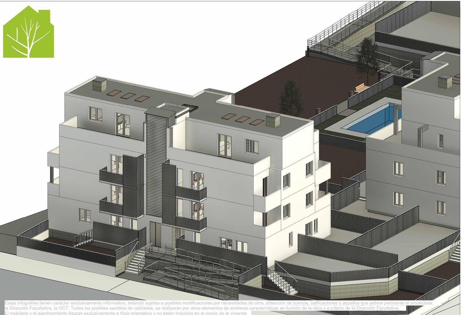 The new residential complex offers a variety of accommodations, including one and two-bedroom apartments, each with one or two bathrooms. For those seeking extra space and privacy, there are penthouses and semi-penthouses featuring large terraces, as well as ground-floor units with expansive private gardens. Enjoy modern comforts such as underfloor heating and cooling systems utilizing aerothermal technology. The shared amenities include a swimming pool, creating a perfect environment for relaxation and leisure.