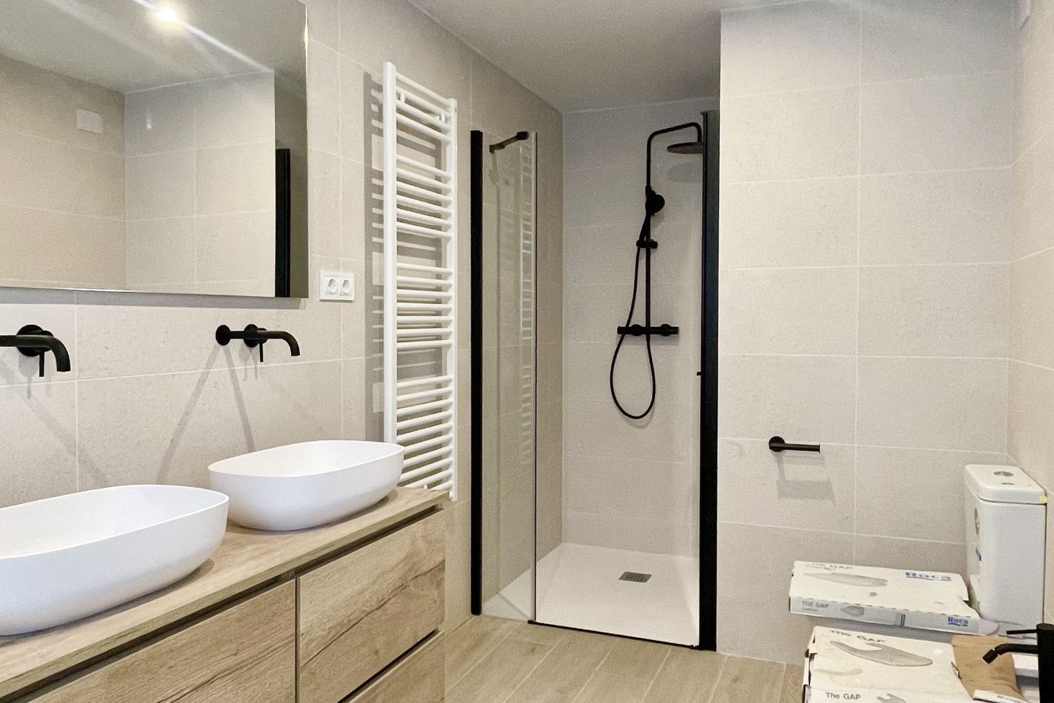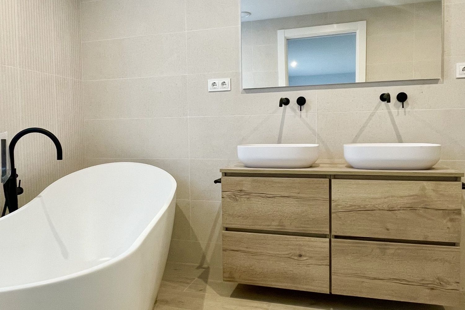 The house is equipped with a top-tier Panasonic climate control system leveraging aerothermal technology for efficient heating and cooling distributed through ductwork. Each floor is fitted with an indoor unit, supported by an external unit located on the roof. Moreover, underfloor heating powered by aerothermal energy guarantees warm interiors during cooler months. The air quality is optimized through a mechanical ventilation system with heat recovery capabilities, while hot water is provided by a 300-liter aerothermal system.