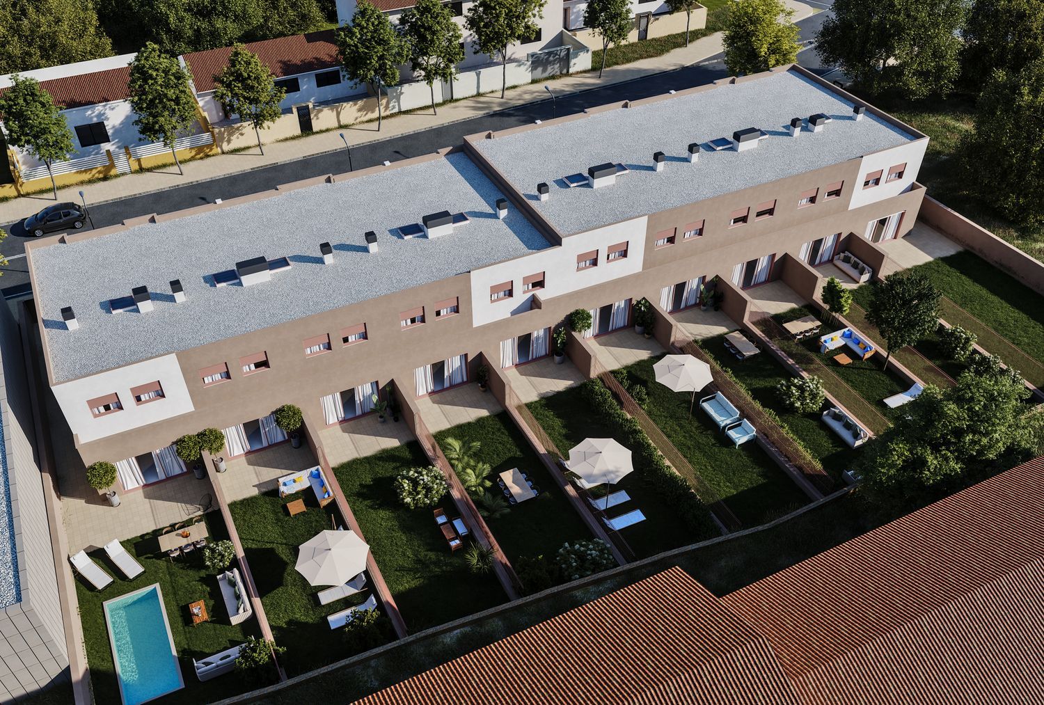 Introducing the latest real estate development located in the picturesque area of Vilanova i la Geltrú. This exclusive residential project features 10 unique family homes, each thoughtfully designed to ensure spacious and comfortable living. Each home spans two levels, offering an inviting ground floor and a serene first floor layout.