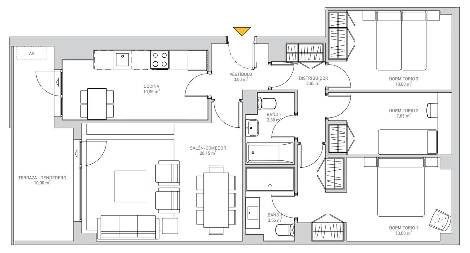 The value for money stands out, with top-quality finishes and the opportunity to select various features at no additional cost, allowing you to personalize your living space exactly as you wish. The emphasis on high-quality materials and sustainability sets this development apart, ensuring a high energy rating through the thoughtful use of construction materials, excellent insulation, and underfloor heating.