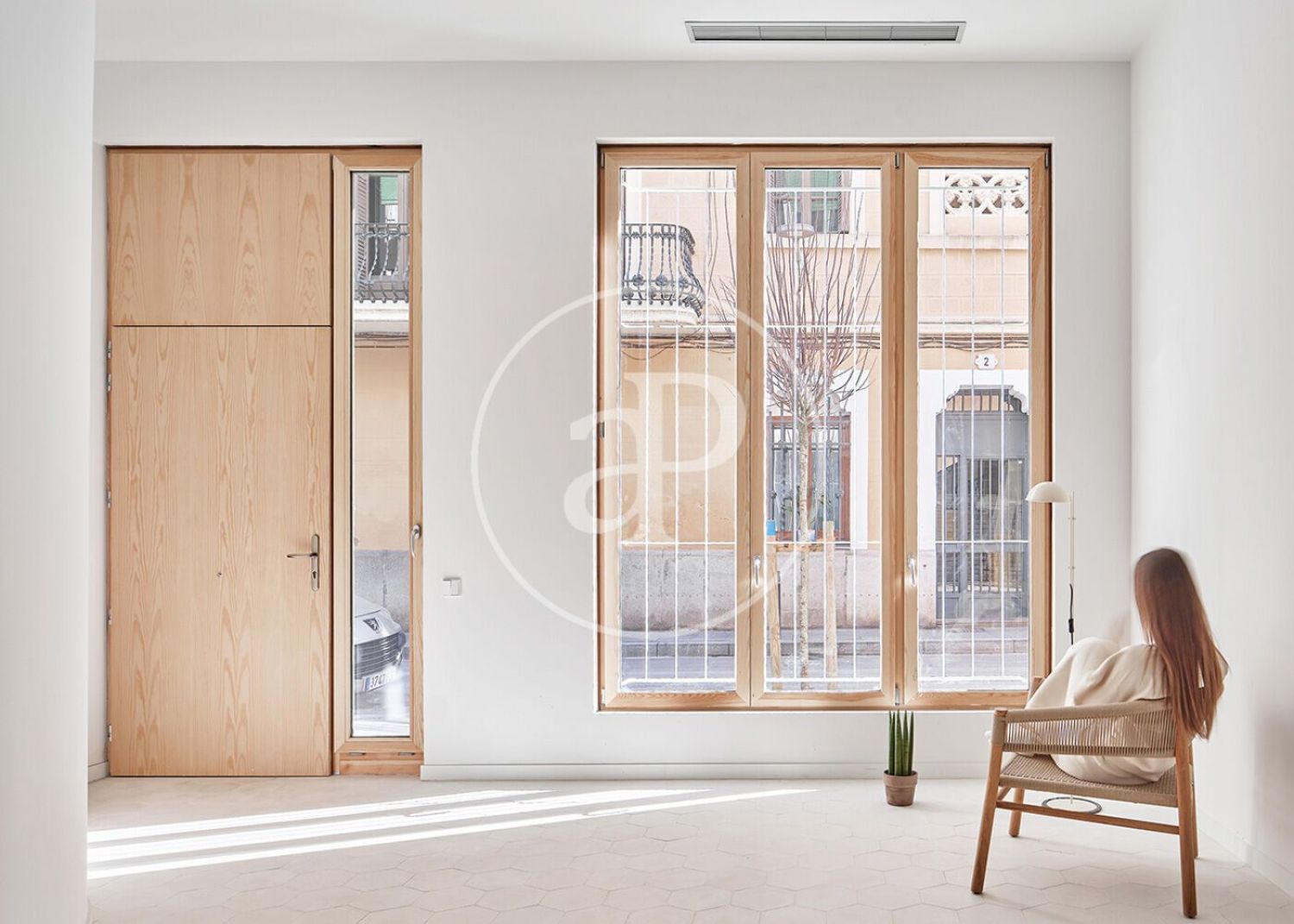 Featuring ceilings that soar to a remarkable height of 4 meters and large windows positioned on both the front and rear faces, the apartment is bathed in an abundance of natural light throughout the day. Exceptional craftsmanship is evident in every detail, with only the highest quality materials used in construction. This includes exterior insulation systems, precision-engineered accoya wood carpentry offering superior thermal and acoustic sealing, and elegantly patterned hydraulic tile flooring. The state-of-the-art kitchen is fitted with a white porcelain tile countertop and high-end appliances, including a combo fridge, dishwasher, and oven.