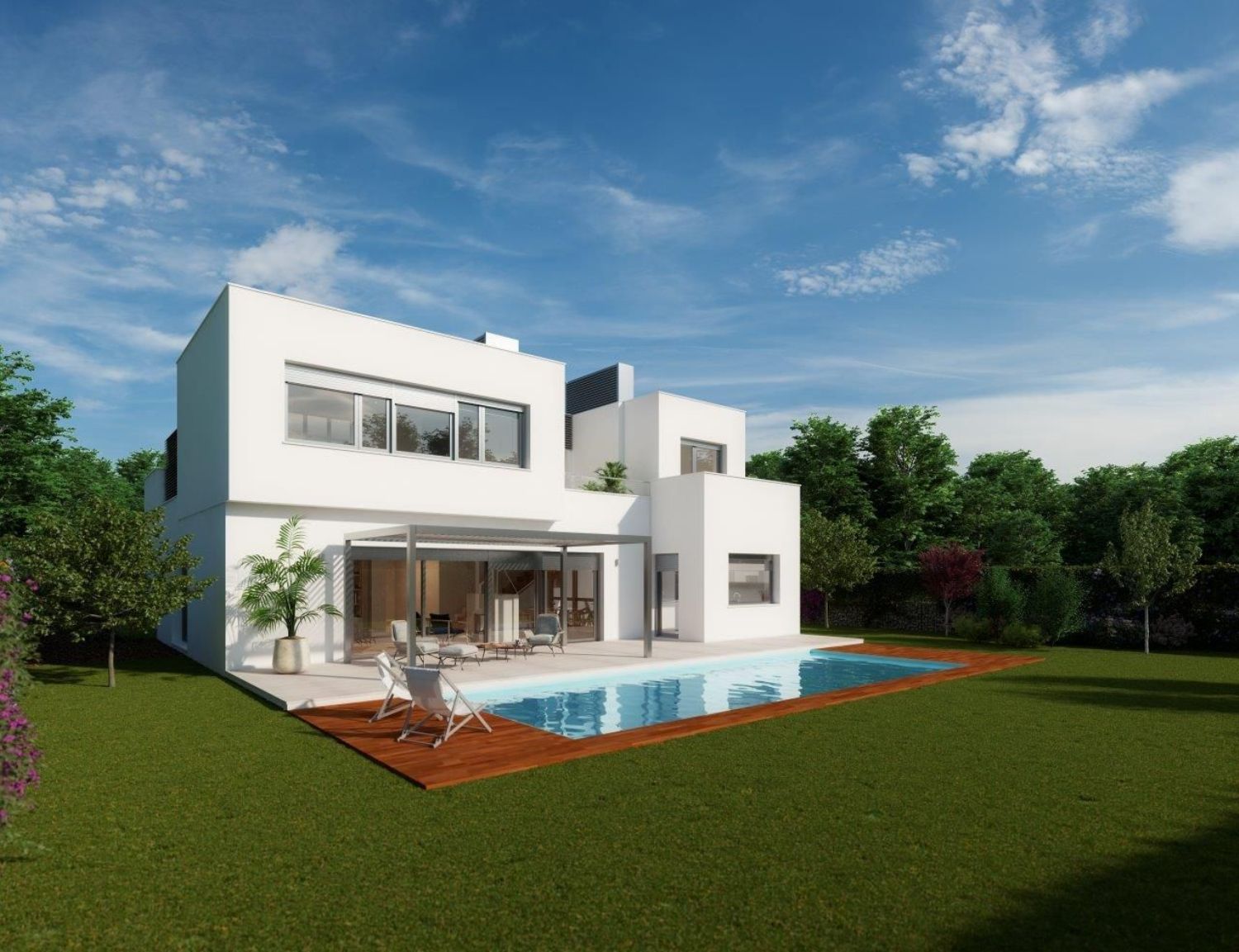 Construction has begun on an exciting new project featuring five independent residences in a prestigious area of Torrelodones. These detached homes offer unique living experiences with options for three, four, or five bedrooms, starting from €1,210,000. Each residence boasts a spacious floor plan of 300 square meters, complemented by terraces totaling 117 square meters, all set on parcels of more than 800 square meters. These homes are designed for ultimate comfort and style, with top-tier finishes and state-of-the-art features.