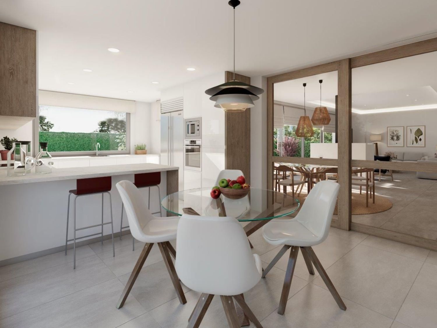The residences in La Quinta de Torrelodones are crafted to meet the highest energy efficiency standards with an A-grade energy label. Utilizing cutting-edge aerothermal technology and refreshing underfloor heating, these homes ensure a comfortable environment year-round. Delight in a fully equipped kitchen featuring premium brand appliances, and enjoy the option of a private garden and pool on an 800-square-meter lot. The architectural design ensures ample natural light, thanks to its expansive terraces and windows, creating a bright and inviting atmosphere throughout.