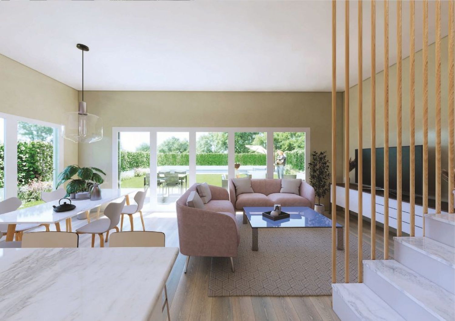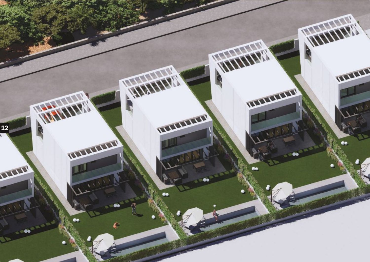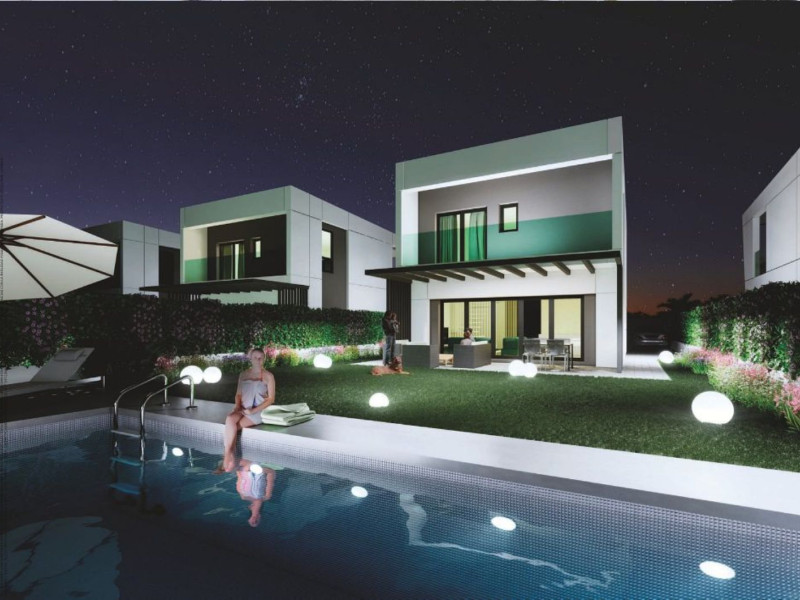 The project features 12 detached houses, each boasting three bedrooms, three bathrooms, a basement, expansive windows, a pergola, and the option to add a private garden pool. These homes occupy plots starting from 360 square meters, with 182.11 square meters of built space spread across three floors: two above ground and a 60-square-meter basement. Every home comes with two viewing terraces, two on-surface parking spaces, and generous outdoor areas perfect for landscaping.