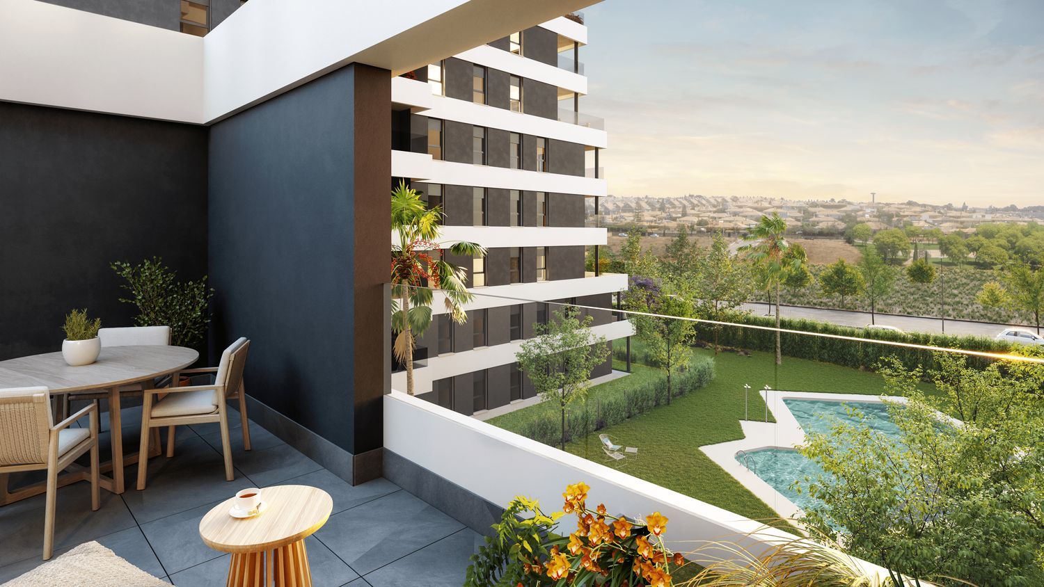Discover a new way of living with our recently initiated construction of 169 exclusive homes featuring 2 to 3 bedrooms. All homes come with terraces, ground floors with gardens, and penthouses ready to inspire your creativity. Each residence offers expansive terraces for outdoor enjoyment and stunning views of the serene surroundings, with a dual orientation that ensures excellent ventilation, promoting energy efficiency and enhancing your quality of life. High-quality finishes include lacquered aluminum carpentry, double-layer gypsum walls, textured wood wardrobes, fully tiled bathrooms, and fully equipped kitchens, designed to maximize space, natural light, and energy efficiency.