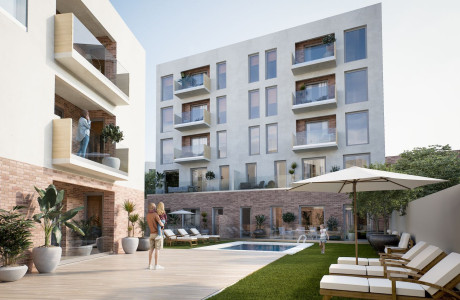 Introducing exclusive and modern residences located in the heart of a vibrant district within Mollet del Vallès. This development features 35 residential units, complete with parking spaces, storage rooms, and a lush garden featuring a communal swimming pool. The building offers both two and three-bedroom apartments, each with a spacious outdoor terrace for enjoying the pleasant climate.