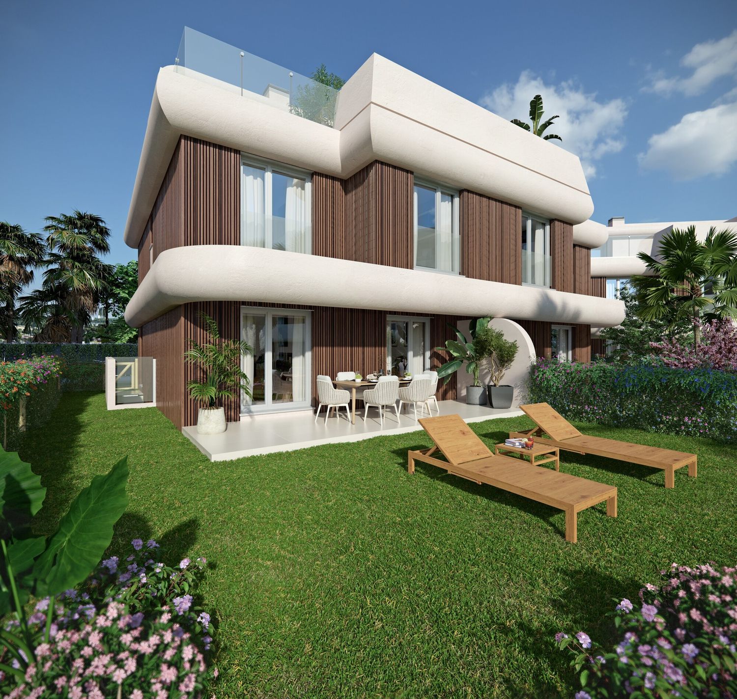 The model home in our exclusive residential community is now open for viewing. The development offers a variety of living spaces, including modern apartments and semi-detached houses, with options ranging from two to three bedrooms. Each residence is designed with contemporary elegance and high-quality finishes. Expansive terraces with glass railings allow for seamless indoor-outdoor living, complemented by integrated modern kitchens and dining areas alongside surface parking spaces. Additionally, there is an option to purchase a storage unit if required.