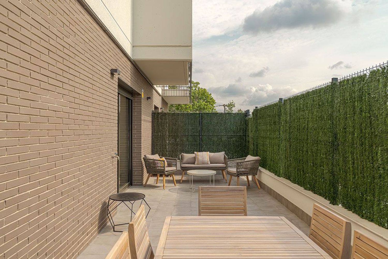 The building enhances privacy with its main entrance on Calle de les Llevadores, leading to a spacious enclosed area. It also boasts 43 parking spaces and 19 storage units in the basement. Residents will appreciate the high-quality finishes and top-brand features, including parquet flooring throughout, ceramic tiles in bathrooms and kitchens, and modern amenities such as an oven and ceramic hob, along with efficient heating. The remaining ground-floor homes are well-configured, filled with natural light, and ventilated perfectly. These spaces reach up to 114 m² and include expansive terraces up to 32 m², providing plenty of outdoor living room.