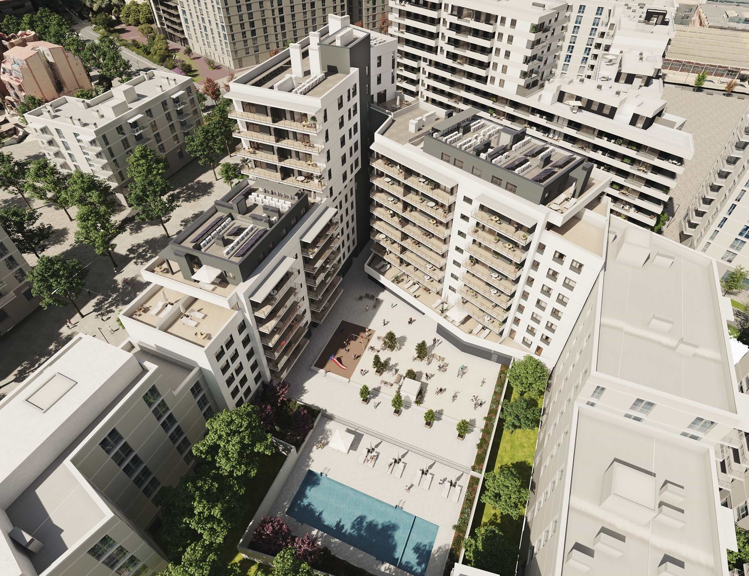offers a stunning residential complex featuring a range of designs: ground floor plus 7 stories, ground floor plus 9 stories, and ground floor plus 11 stories. This development hosts 126 apartments, each providing 4 spacious bedrooms. Every building is thoughtfully distributed across three staircases, ensuring convenience and accessibility. Nestled in a well-established and highly valued neighborhood, these homes are situated near the expansion of a lively avenue within the city of Esplugues de Llobregat.