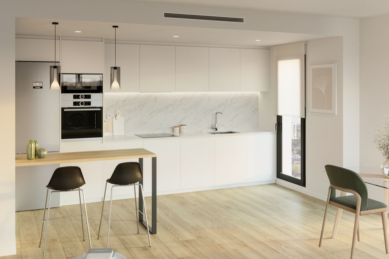 Living here means enjoying all that València has to offer, from its pleasant climate to modern urban amenities. Explore the vibrant cityscape while having the comfort of a spacious, well-designed home. Step into our showroom to explore material samples and finishes, showcasing the quality and details of your future residence.