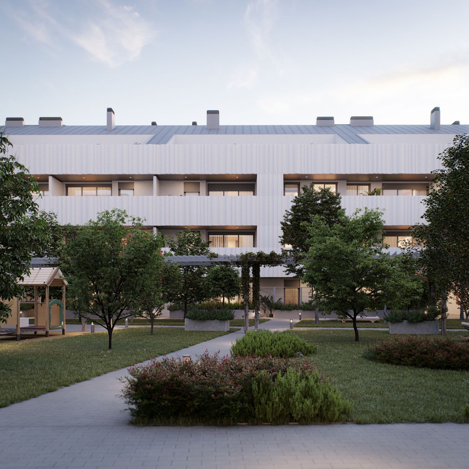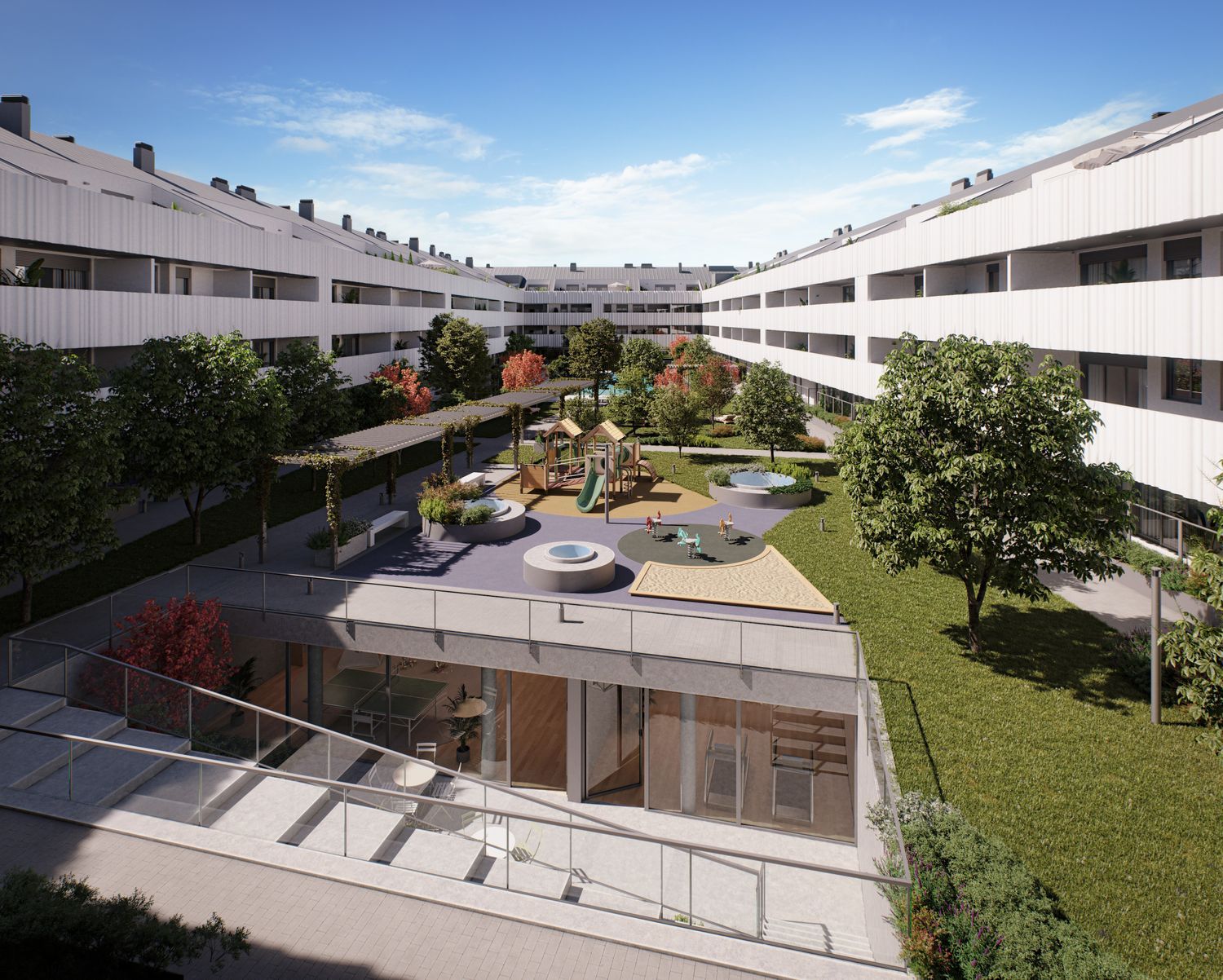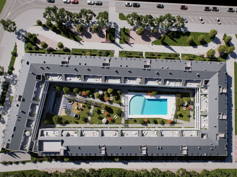 Located in the vibrant heart of the city, this new development will feature 137 residences with 2, 3, and 4-bedroom options. Each unit is designed with a private terrace or garden, in addition to shared amenities spanning over 3,000 square meters. These spaces include beautifully landscaped areas, a swimming pool, children's play zones, a fully-equipped gym, and a community room. This modern architectural project aims to meet the growing demands of the municipality, facilitating a connection to the historic center while enhancing the surrounding neighborhoods.