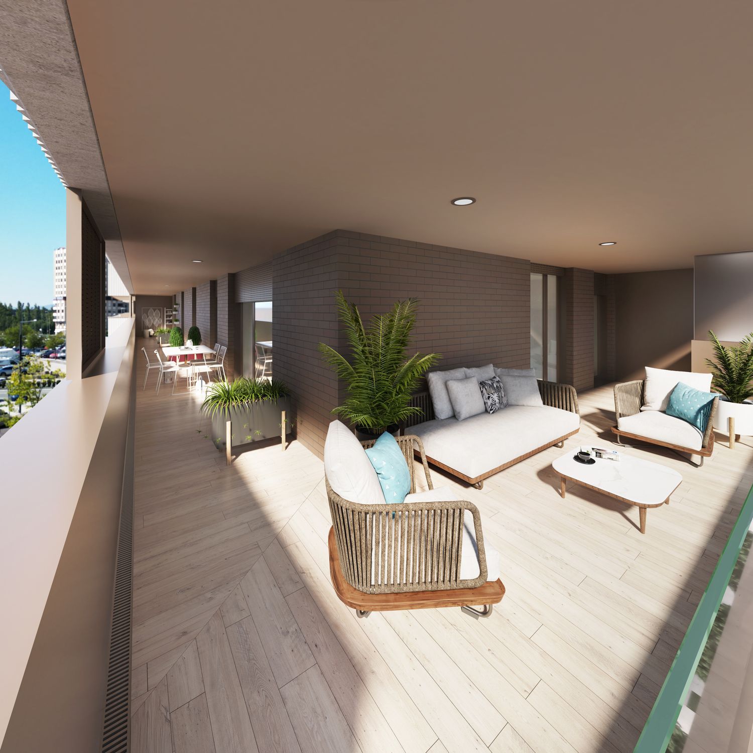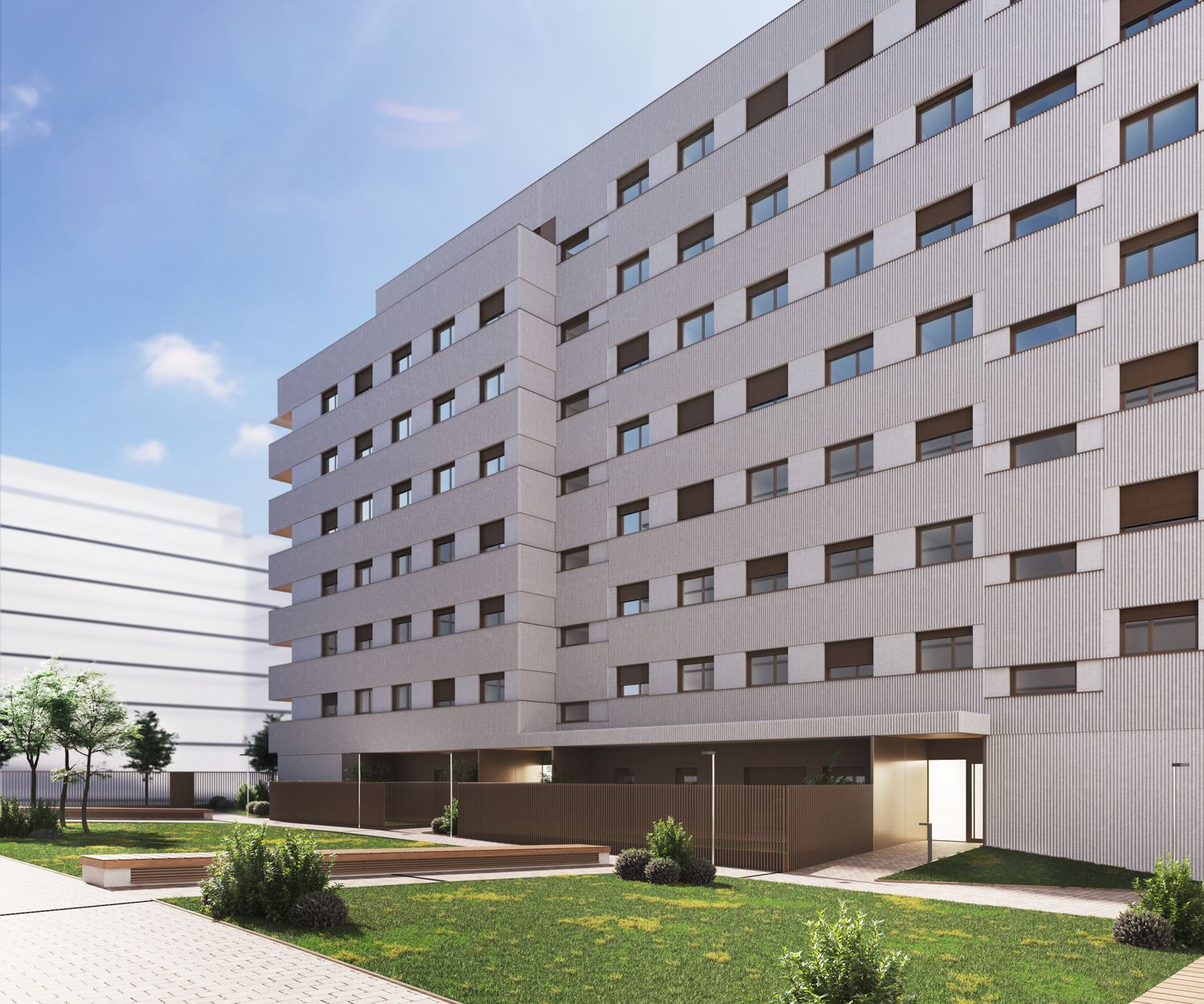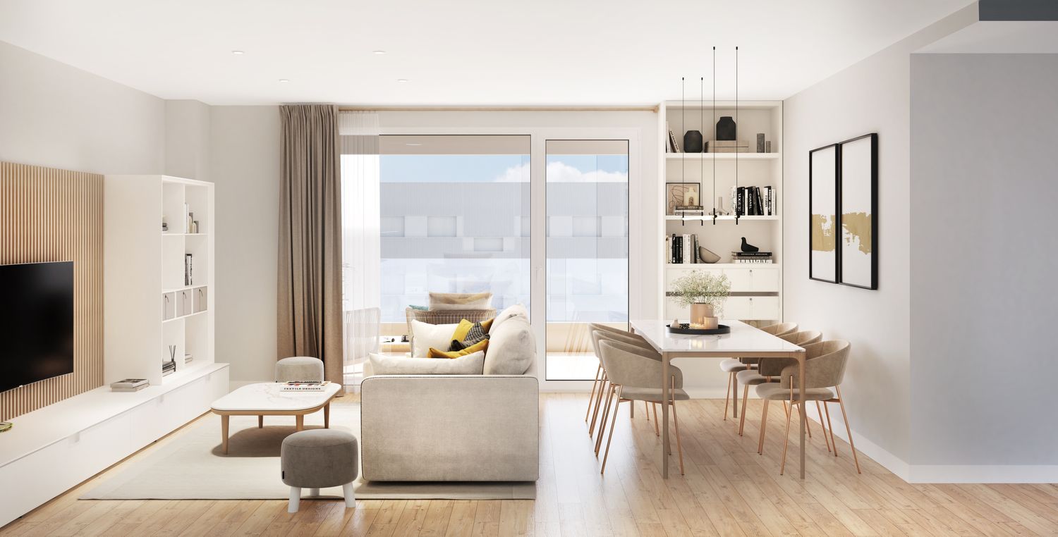 Pamplona offers a unique blend of tradition and modern living, making it an ideal place for individuals and families. The apartments feature sleek, contemporary kitchens with high-quality fixtures and appliances, integrated wardrobes in bedrooms, and stylish bathrooms with suspended vanity units. Durable porcelain flooring with a wood-like finish in varying styles, ceramic walls in kitchens and bathrooms, and robust security features ensure a comfortable and secure living environment.