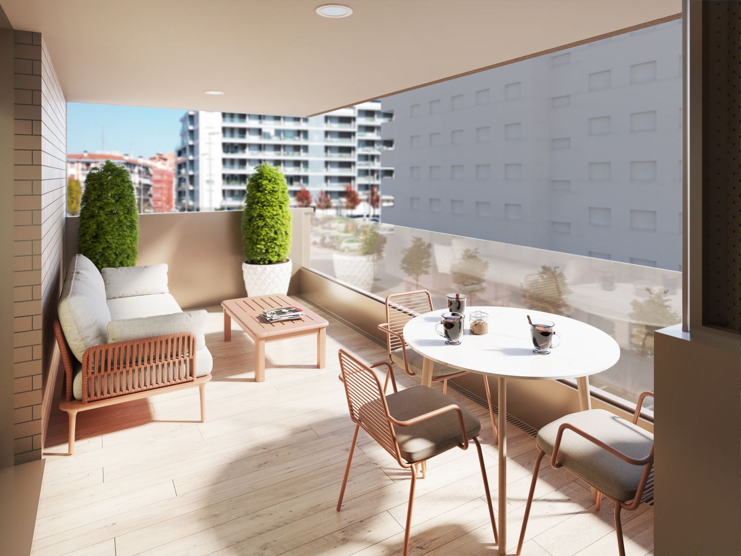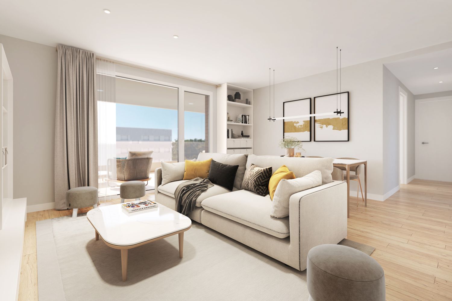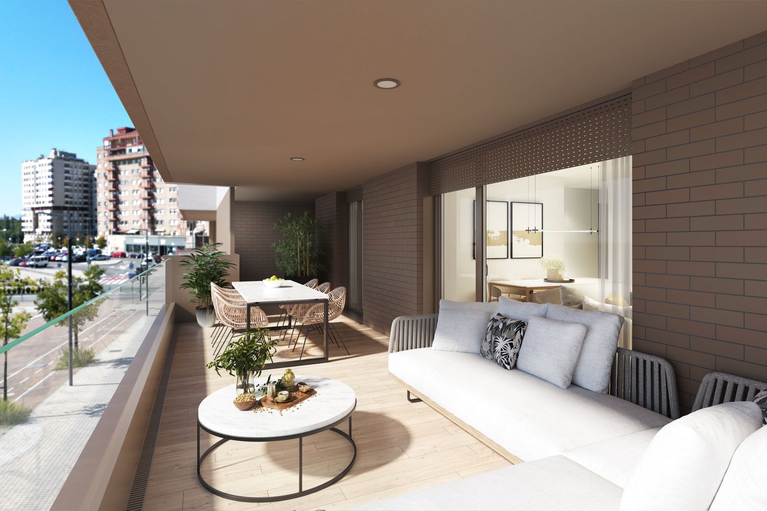 Pamplona offers a unique blend of tradition and modern living, making it an ideal place for individuals and families. The apartments feature sleek, contemporary kitchens with high-quality fixtures and appliances, integrated wardrobes in bedrooms, and stylish bathrooms with suspended vanity units. Durable porcelain flooring with a wood-like finish in varying styles, ceramic walls in kitchens and bathrooms, and robust security features ensure a comfortable and secure living environment.