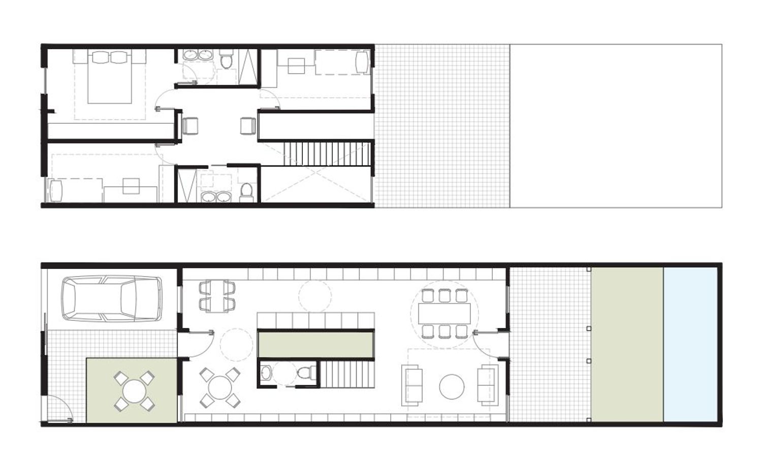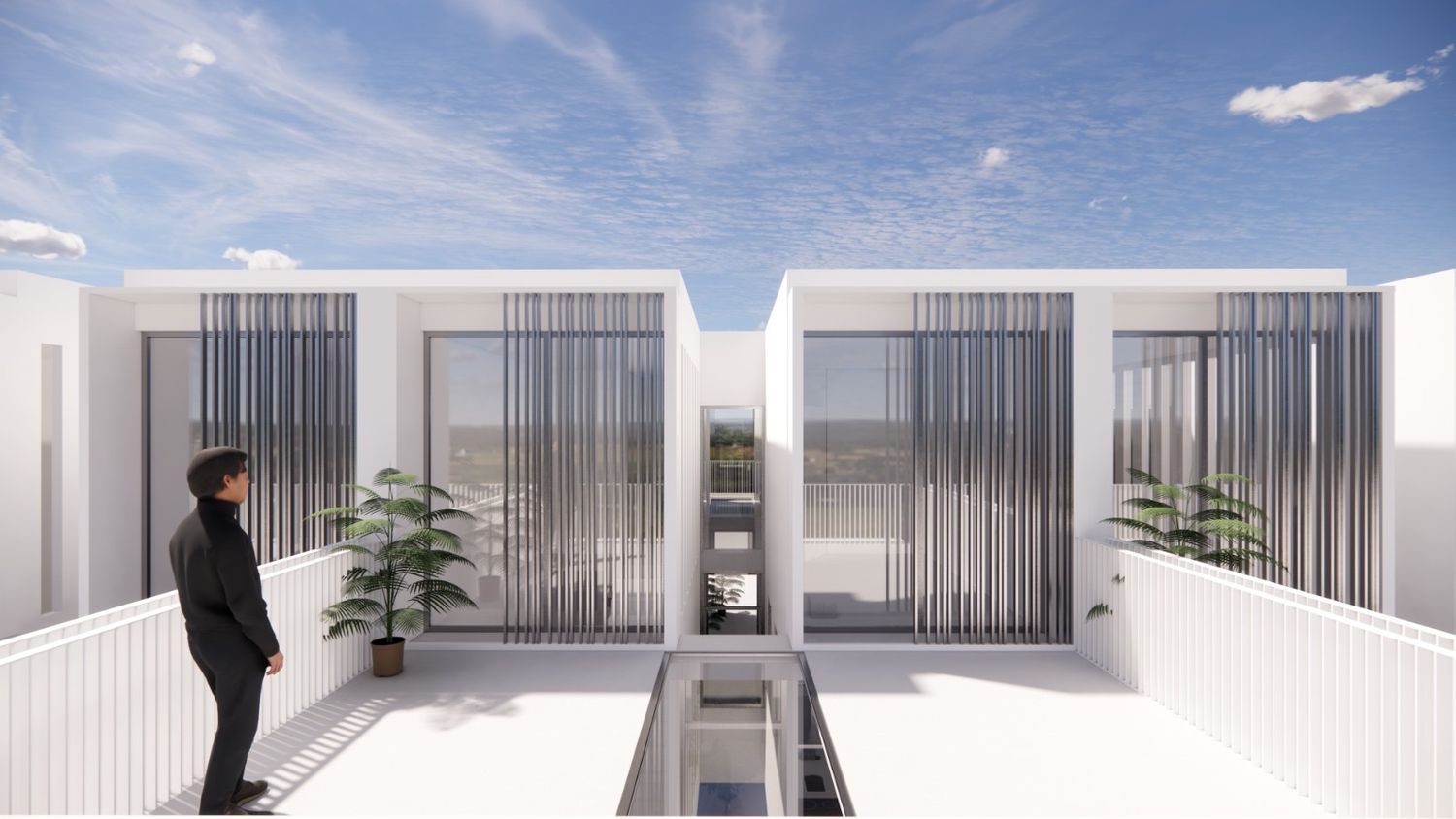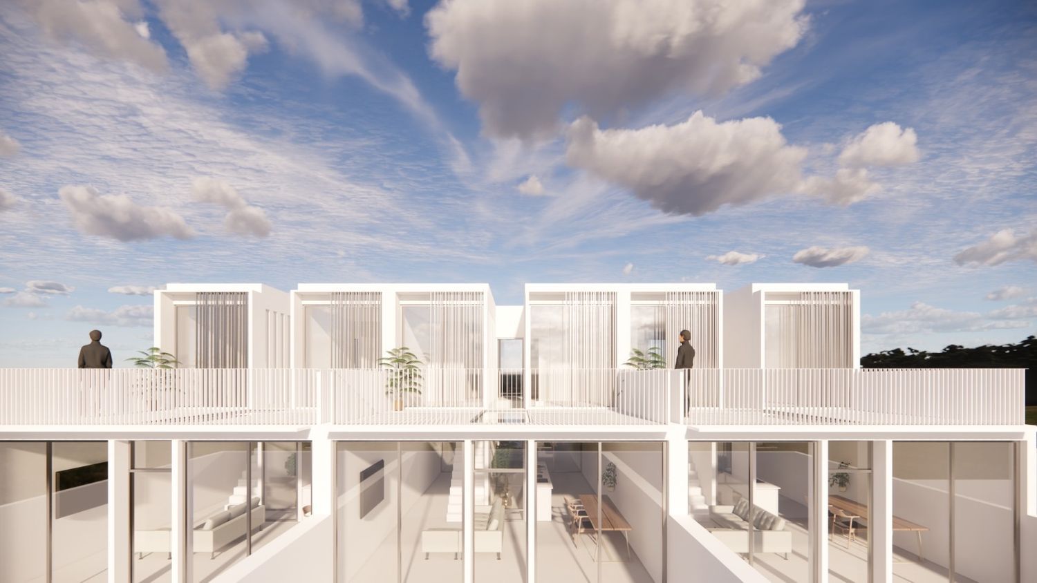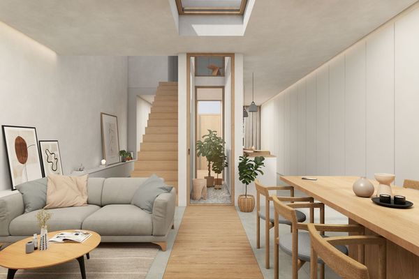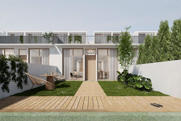 The thoughtfully designed homes are spread across two levels. The ground floor welcomes you with a spacious entry area, complete with a covered garage. An open kitchen seamlessly connects to a living and dining room, providing a modern and airy feel. Here, a convenient guest restroom is available, along with a generous 47 square meter rear garden where a pool can be installed upon request.