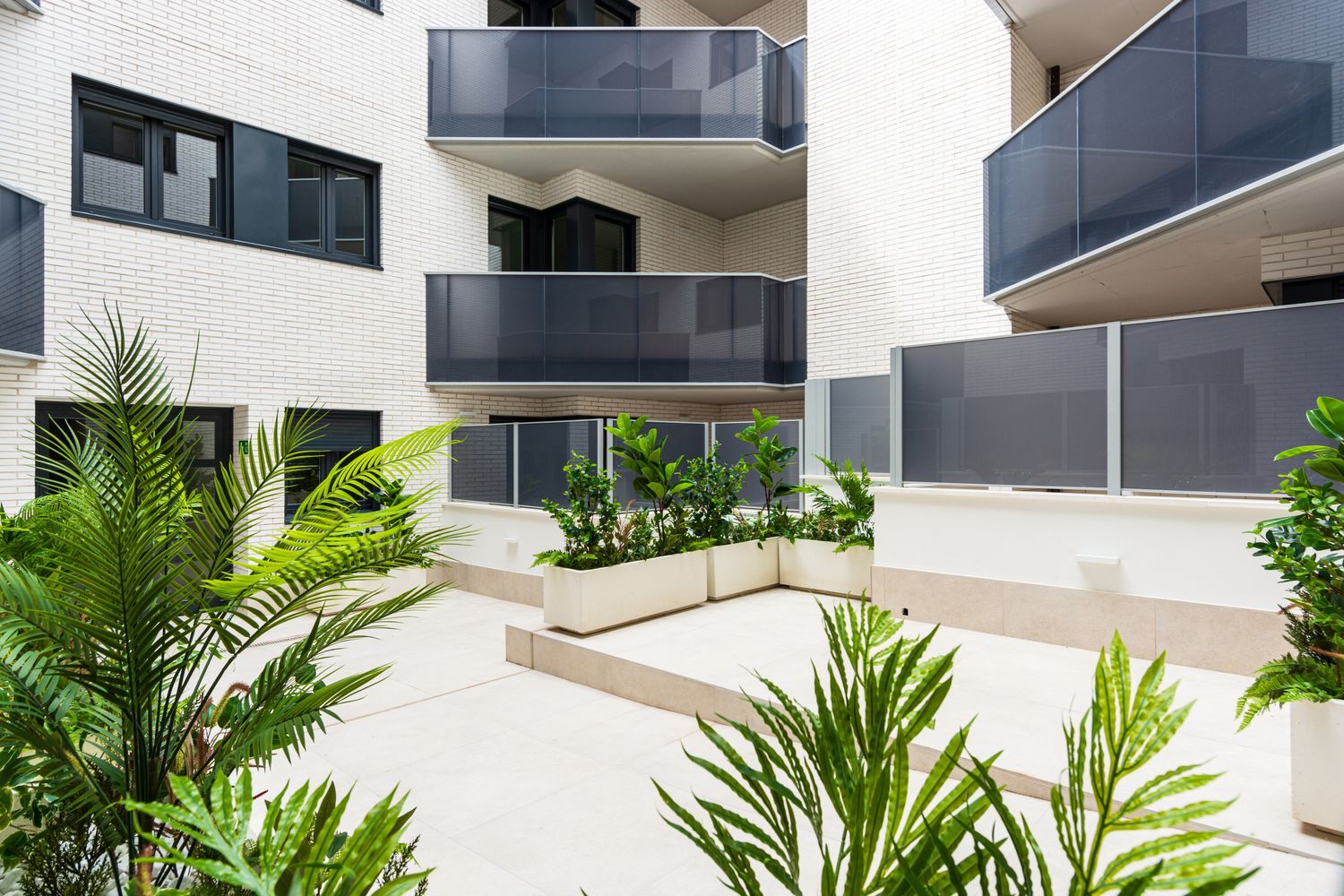 Each residence in this development includes fully equipped kitchens featuring matt white furniture, total extraction drawers with soft closing, porcelain countertops, and undermount sinks with chrome faucets. Bathrooms are of premium quality, and built-in wardrobes are thoughtfully lined and sectioned. The project offers centralized heating with a high-efficiency gas boiler, and hot water is enhanced by a collective aerothermal system for optimal energy savings. Additionally, each unit is fitted with ducted air conditioning systems with heat pumps. Buyers also have the option to acquire additional garages and storage rooms.