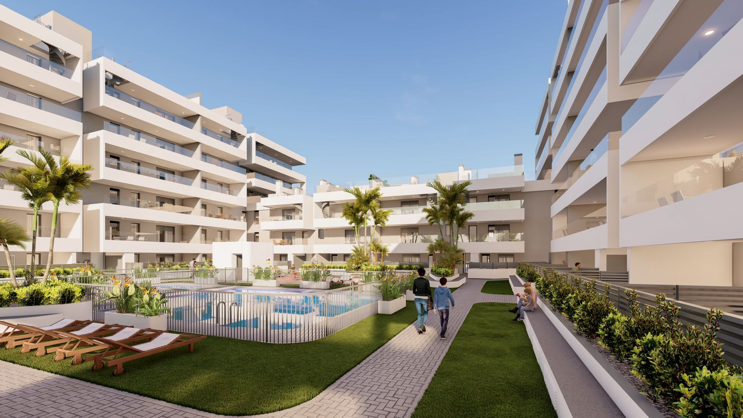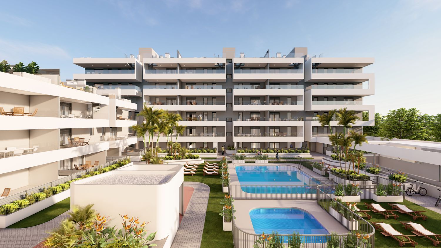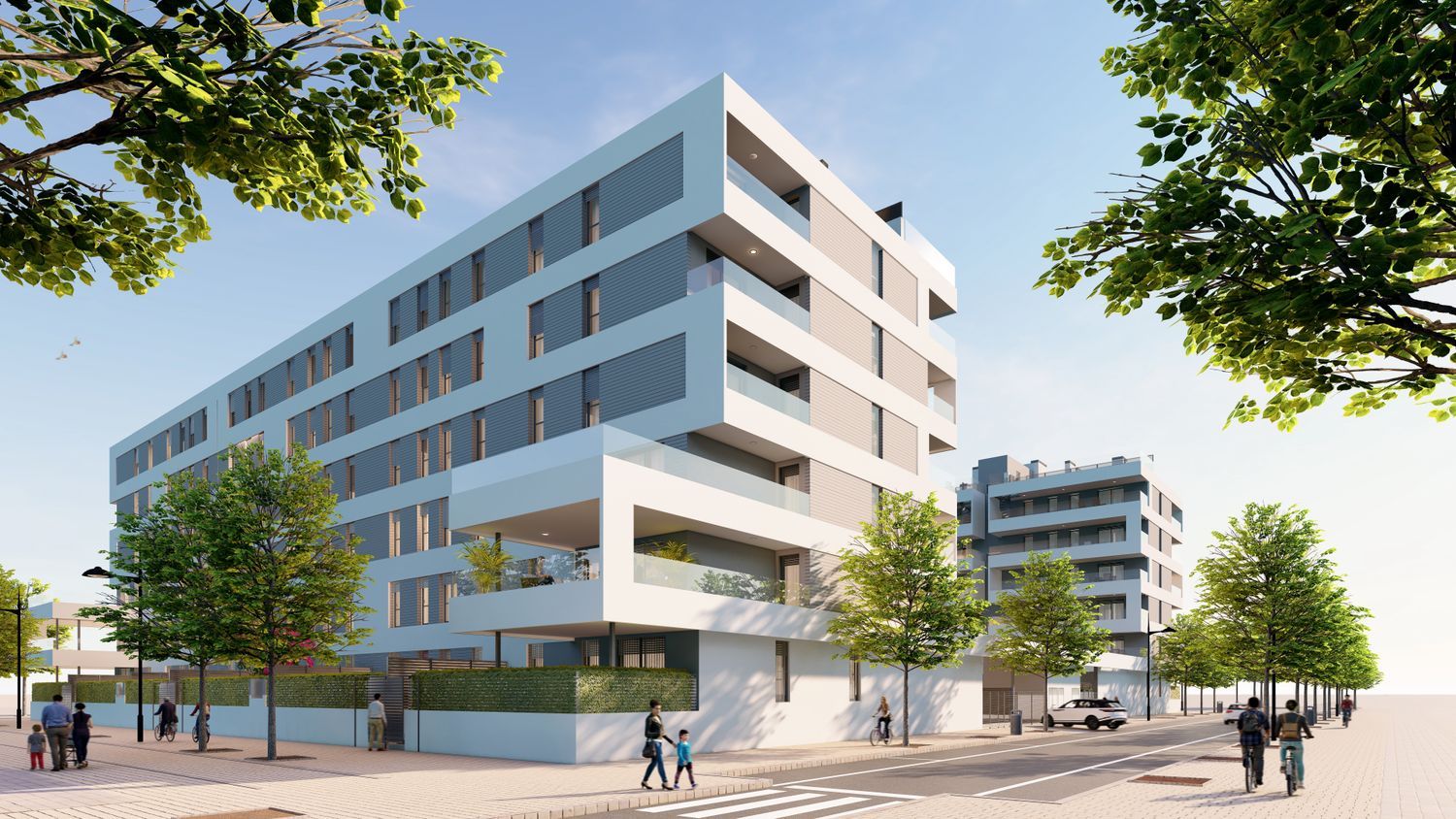 This contemporary building, meticulously planned with quality and sustainability in mind, features a ground floor plus five additional levels. Its U-shaped design maximizes southern exposure, creating generous community areas including gardens and exclusive pools set on an elevated plaza. The apartments boast features such as dual façades to enhance cross ventilation and sunlight exposure, as well as spacious private terraces, gardens, and solariums that fulfill your dream living experience.